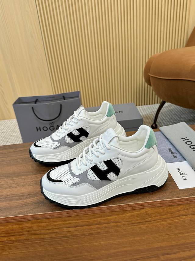 工厂p价 女装女鞋 运动原单 Hogan霍根运动休闲情侣鞋,绒面小牛皮拼接设计,侧面Logo撞色,鞋舌有商标压印,穿孔精细对称,线条完美流畅,细带拼接运动鞋,经典永不过时,是情侣们追求首选, 35-44码45可以定做。转图必爆 。 DDD