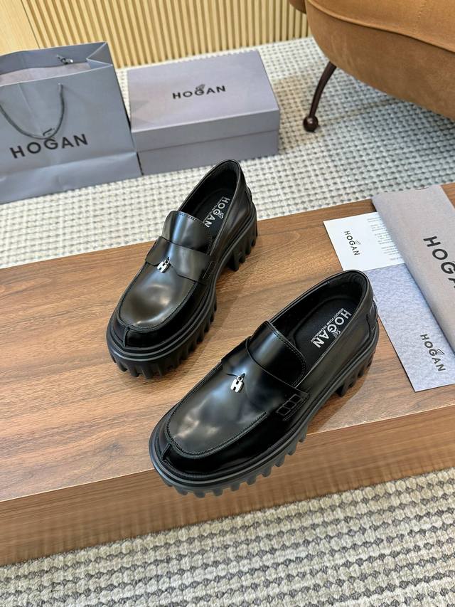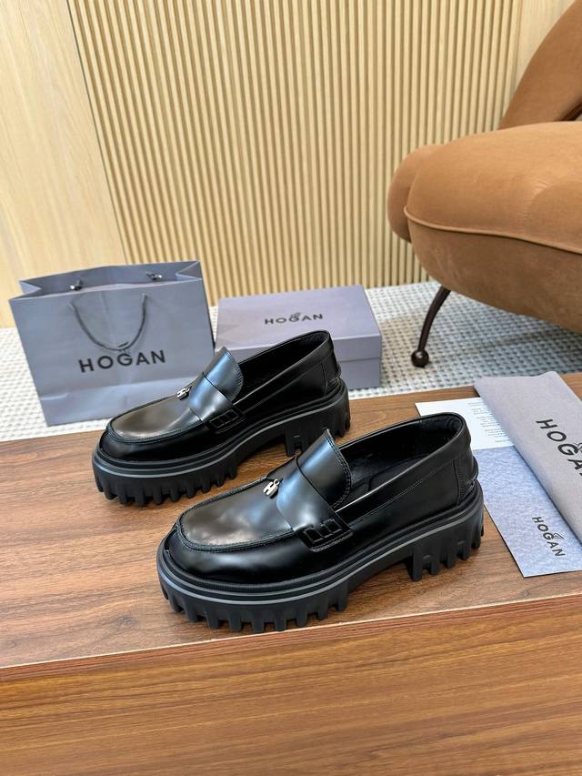 工厂p价 女装女鞋 运动原单 Hogan H700系列 采用个性的厚底设计,蒋醒目的H标志嵌入标志性H-Stripes鞋底,学院风乐福鞋以丝绒般的翻绒皮制成,饰
