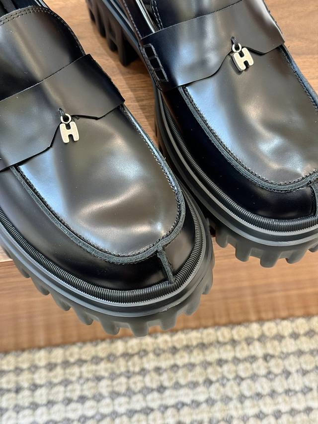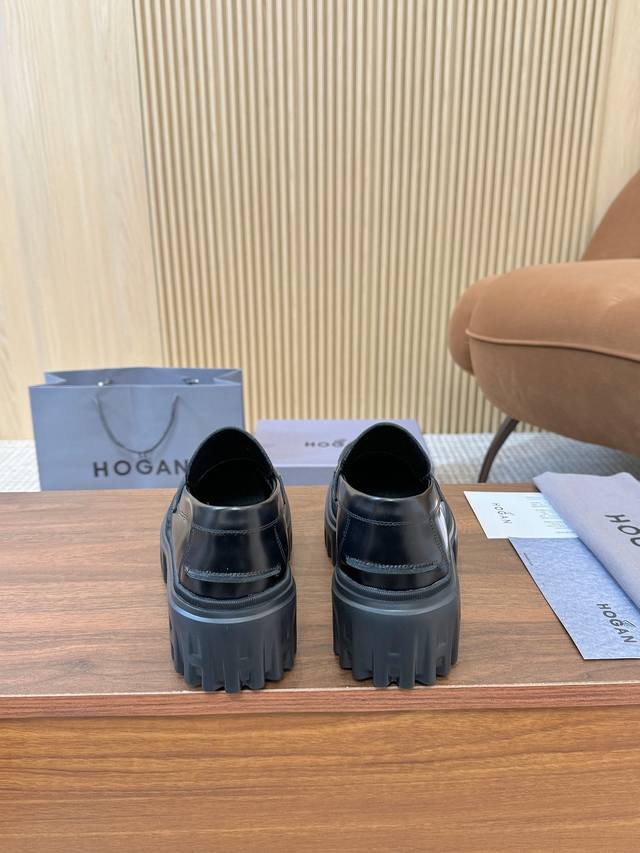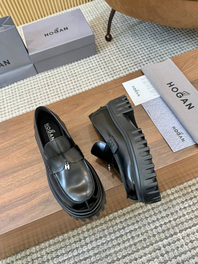 / 工厂p价 女装女鞋 运动原单 Hogan H700系列 采用个性的厚底设计,蒋醒目的H标志嵌入标志性H-Stripes鞋底,学院风乐福鞋以丝绒般的翻绒皮制成,饰