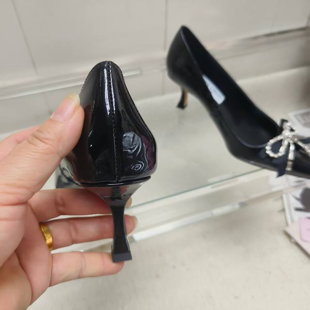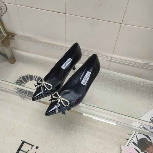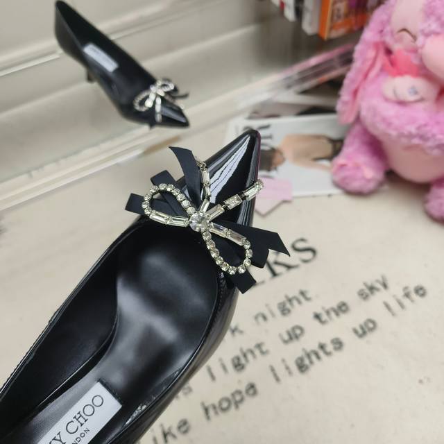 工厂p价 女装女鞋 运动原单 DDD Jimmy Choo Auria系列高跟鞋,采用耀目漆皮面料制作,柔和弧形鞋跟搭配优雅尖头,别具摩登时尚感。吸睛饰有缎面织带和超大号水晶饰蝴蝶结,散发精致魅力,令人一见倾心。 DDD 鞋面:进口闪粉 漆皮 DDD 内里:羊皮 DDD 跟高:6.5Cm DDD 大底:意大利真皮大底 DDD 码数:35~39 34 40~42定做不退换 DDD