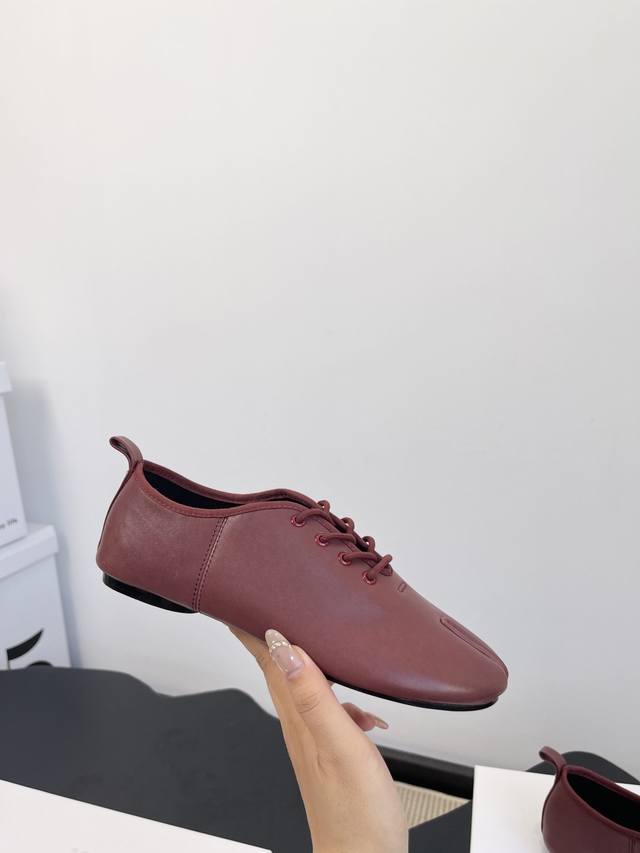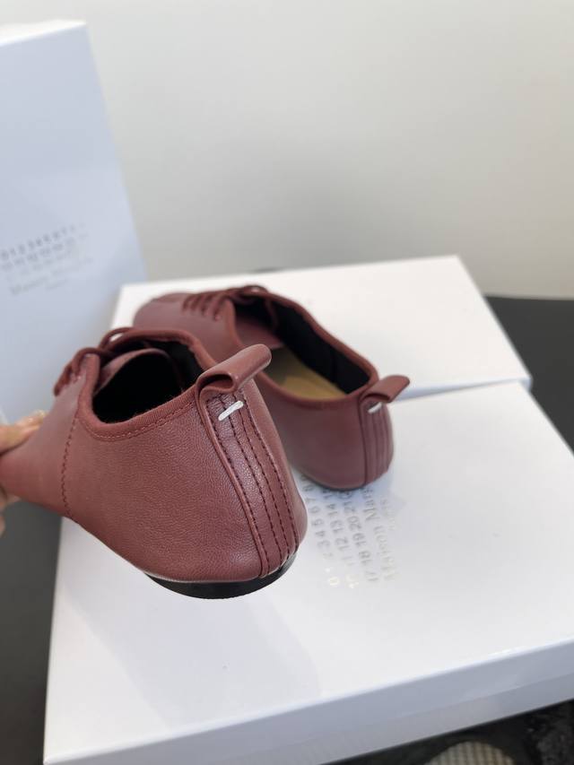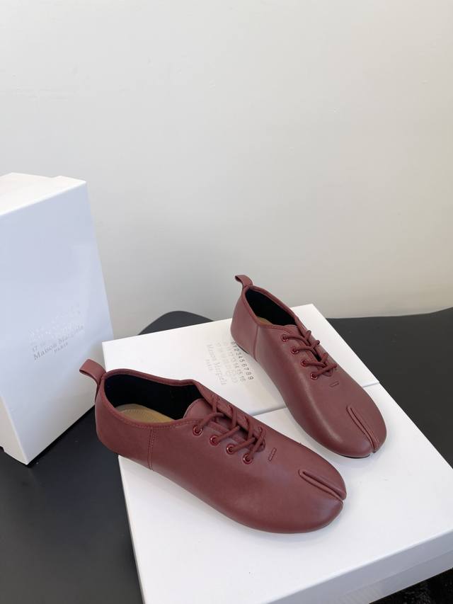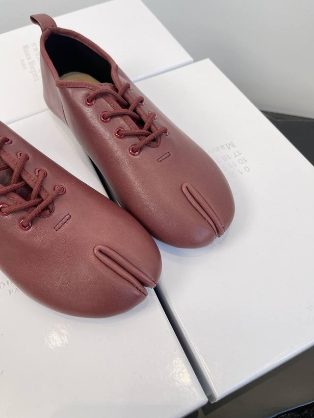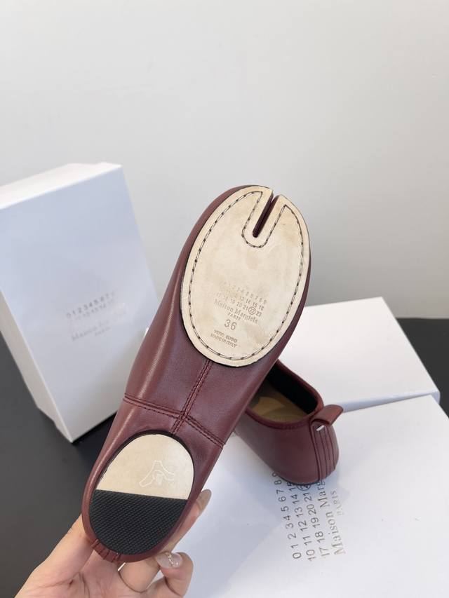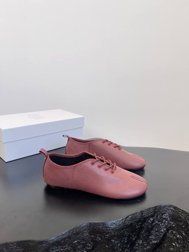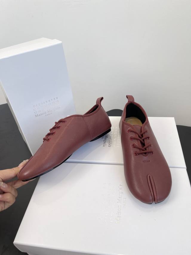 工厂p价 女装女鞋 运动原单 Maison Margiela*25S早秋新款 尖头分趾柔软皮鞋 DDD 这双鞋所营造的,是一种智性的疏离与低调的先锋氛围。不迎合大众,只为懂得的人存在。使用高品质的软质皮革是实现其独特美感的关键。这种皮革能随着穿着者的脚型产生贴合的褶皱,形成独一无二的个人痕迹。然而,在如此柔软的材质上维持尖头鞋的立体轮廓,需要对内里支撑和鞋面定型有极高的工艺要求。 DDD 极致的尖头轮廓,延续了高级时装鞋履的性感与锐利,为整体注入一股不容置疑的力量感。而柔软细腻的小羊皮或小牛皮则以其温润的