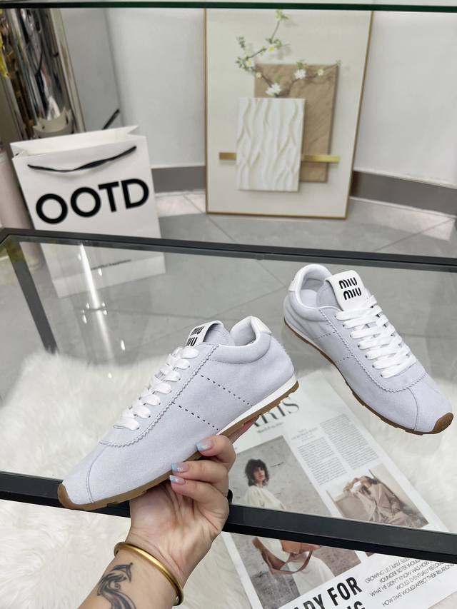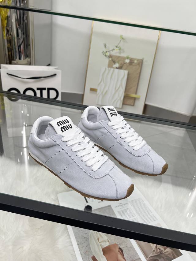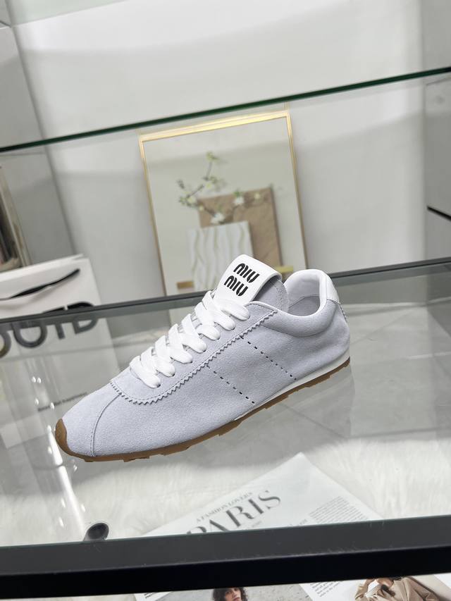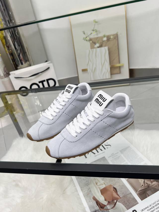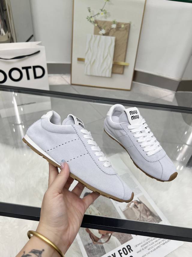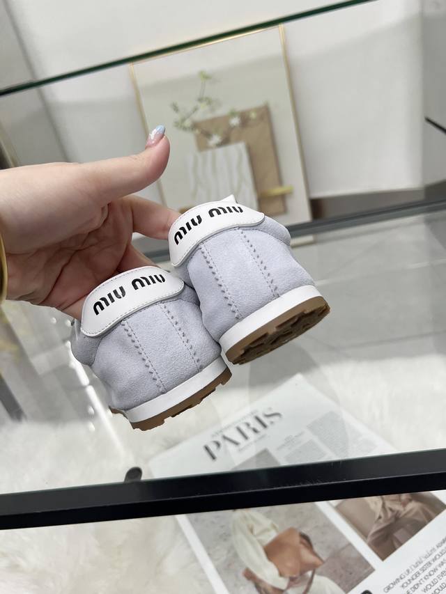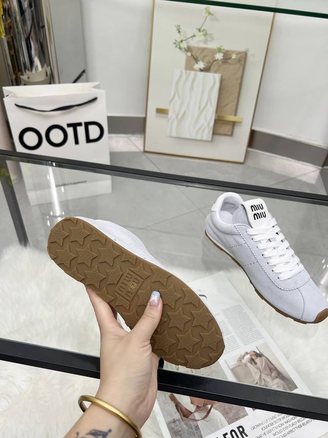 工厂p价 女装女鞋 运动原单 Miu Mu新款德训鞋进口牛皮面,软糯绵羊皮内里♀超软超百搭生胶组合大底防滑耐磨的同时也不累脚多个颜色可选择米白 做旧 银色、杏色