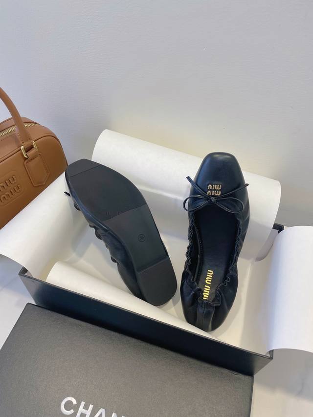 / 工厂p价 女装女鞋 运动原单 Miumiu 芭蕾舞鞋,优雅知性,美丽且如履平地太懂女人心了,太会拿捏精致感了,蝴蝶结+品牌五金饰扣,美到心坎,集性感与可爱一体