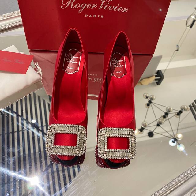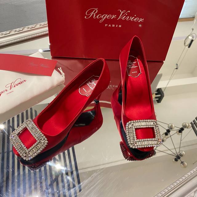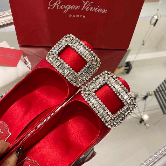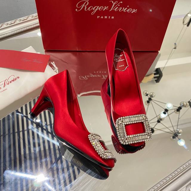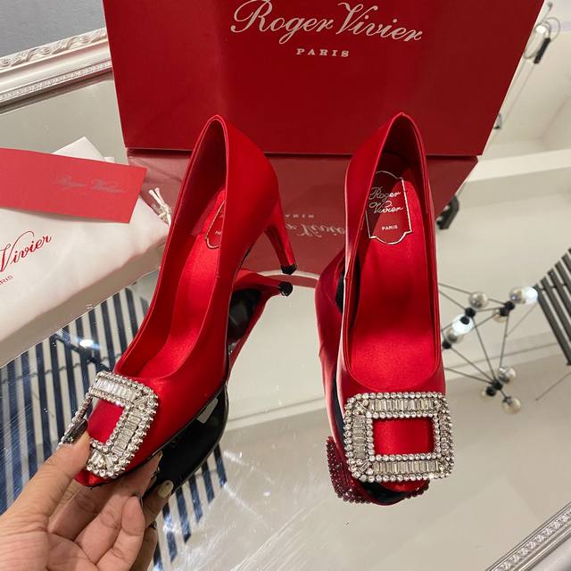 / 工厂p价 女装女鞋 运动原单 Roger Vivier升级板,顶级版本 面料:进口光滑真丝面料 内裡:面料一致 跟高:有6.5Cm.级级闪光奥钻 鞋底:意大利真