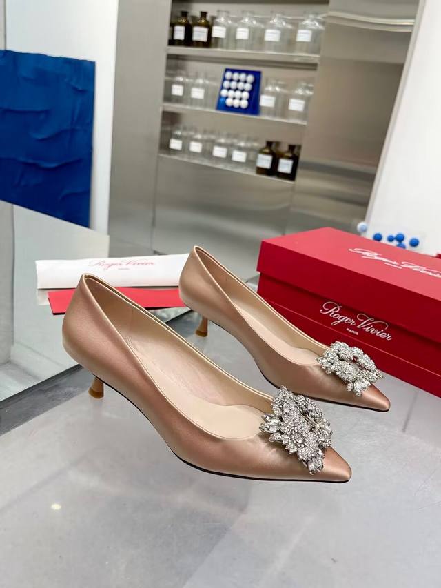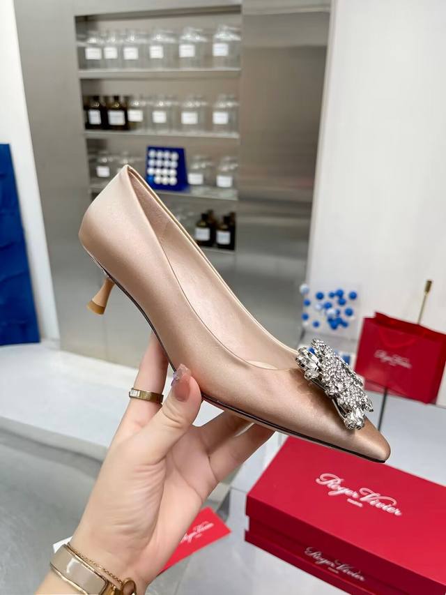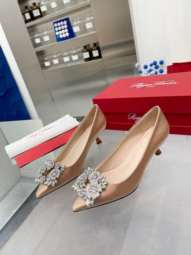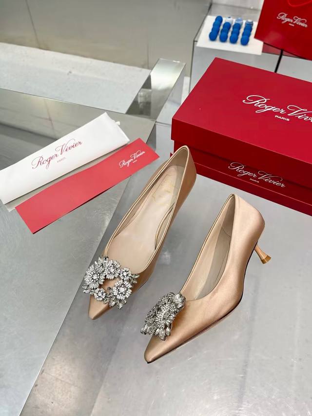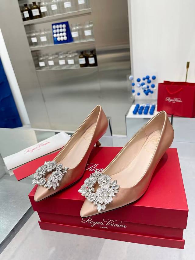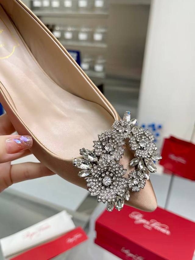 工厂p价 女装女鞋 运动原单 Roger Vivier新款四季新品Rv.Bouquetstrass捷克水钻单鞋上新. 面料:进口真丝面料 内裡:昆种浅色羊皮内裡