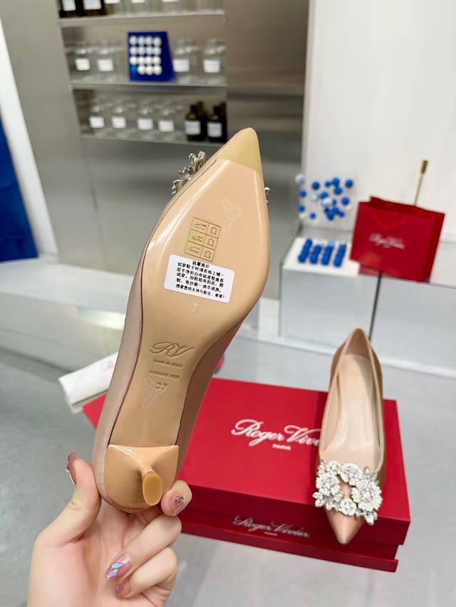 / 工厂p价 女装女鞋 运动原单 Roger Vivier新款四季新品Rv.Bouquetstrass捷克水钻单鞋上新. 面料:进口真丝面料 内裡:昆种浅色羊皮内裡