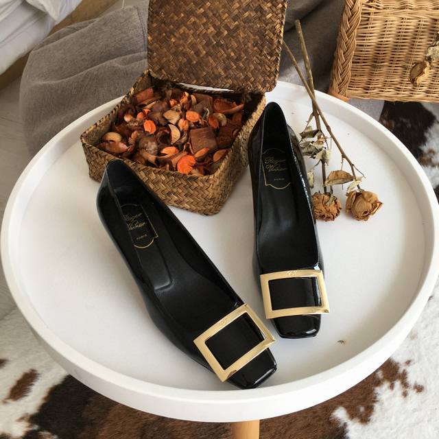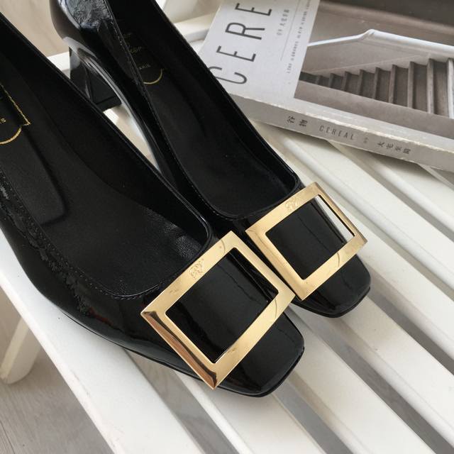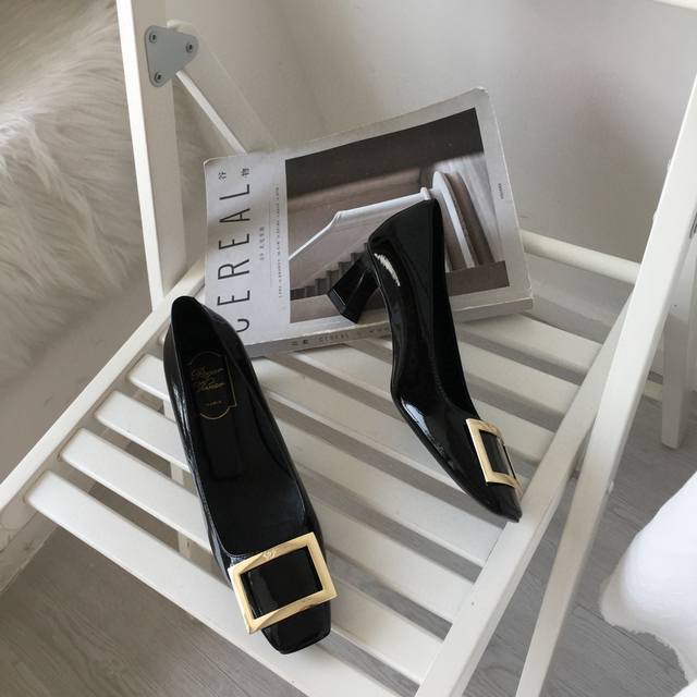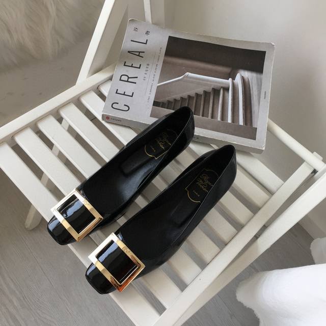 工厂p价 女装女鞋 运动原单 Rogervivie R V女鞋鞋Trompett粗跟方扣女鞋. 本款单鞋百搭舒适.搭配金属方扣. 经典而不失创新. 倾斜的鞋跟为Trmpette增添无穷魅力. 面料进口软牛柒皮. 内垫脚一致羊皮内. 跟高5Cm. 码数35-40 34.40 订做. DDD