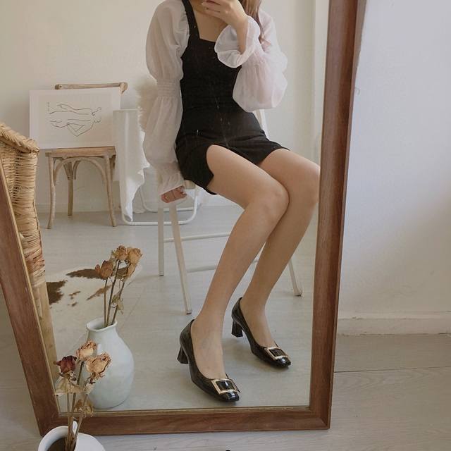 / 工厂p价 女装女鞋 运动原单 Rogervivie R V女鞋鞋Trompett粗跟方扣女鞋. 本款单鞋百搭舒适.搭配金属方扣. 经典而不失创新. 倾斜的鞋跟为