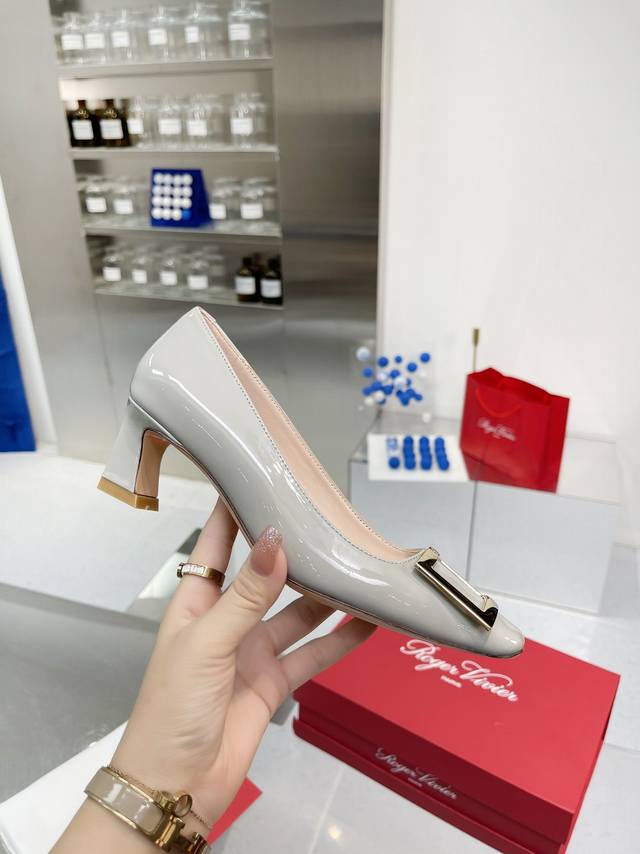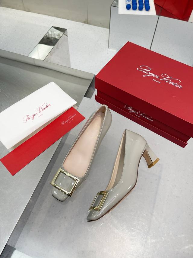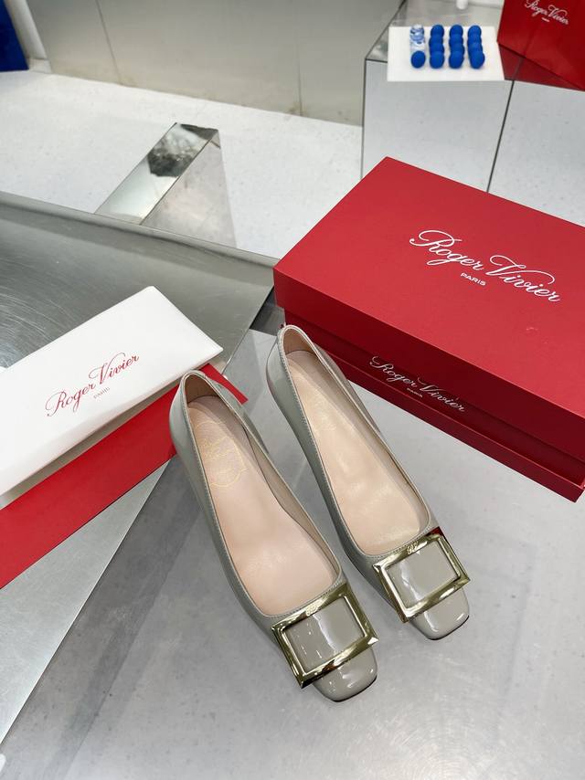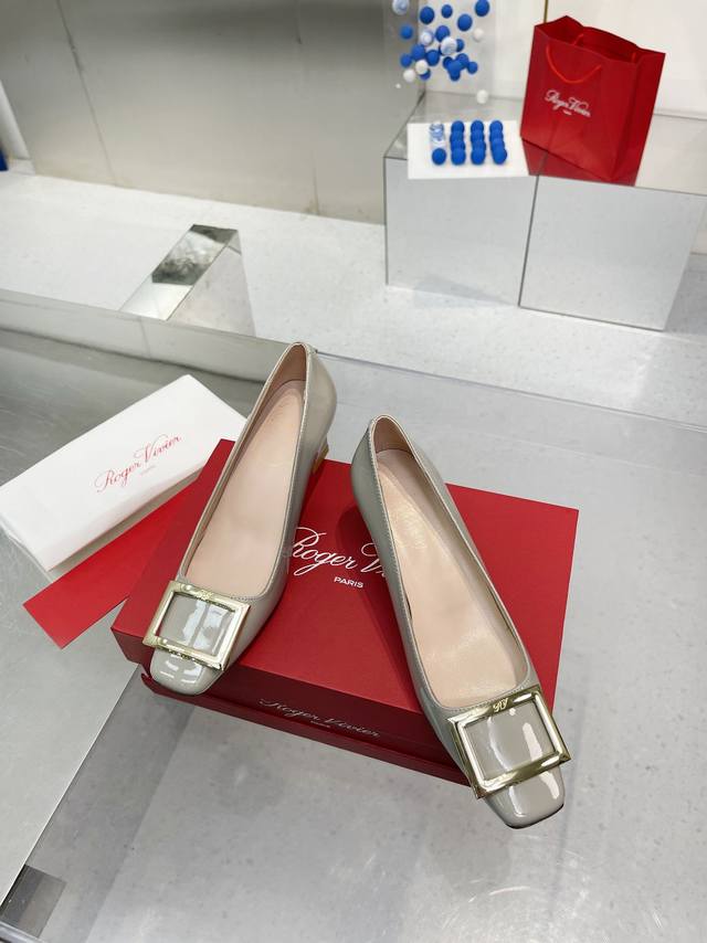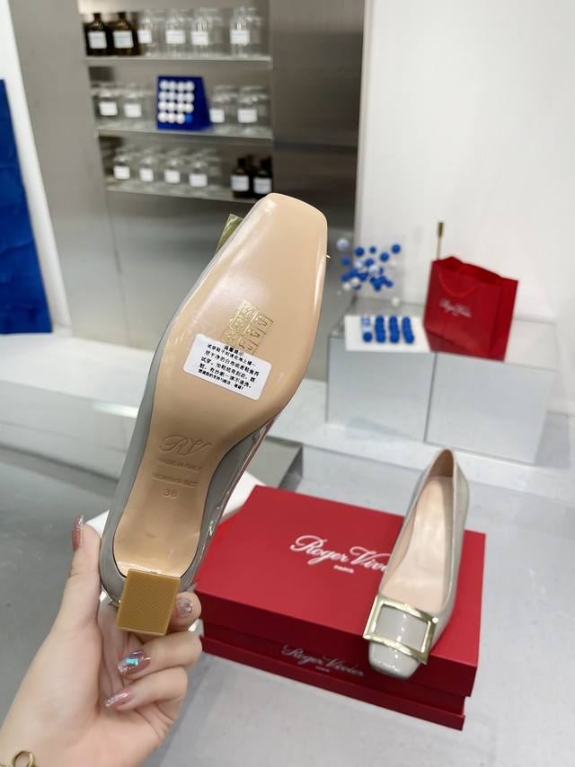 / 工厂p价 女装女鞋 运动原单 Rogervivie R V女鞋鞋Trompett粗跟方扣女鞋. 本款单鞋百搭舒适.搭配金属方扣. 经典而不失创新. 倾斜的鞋跟为