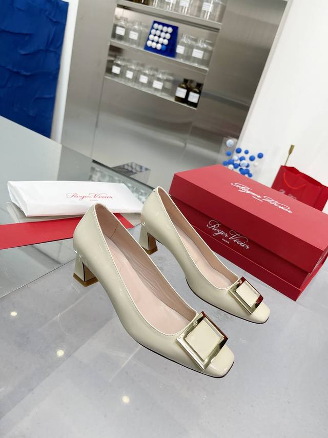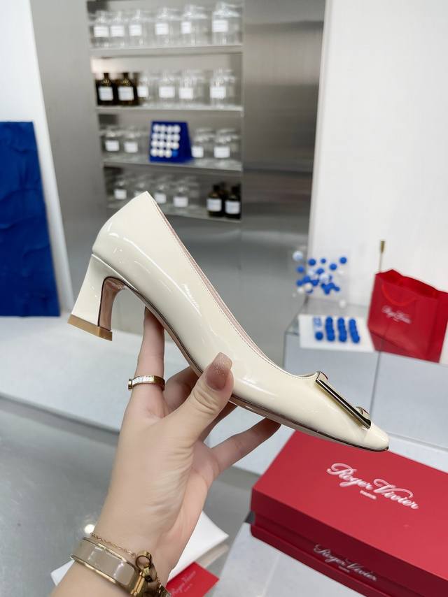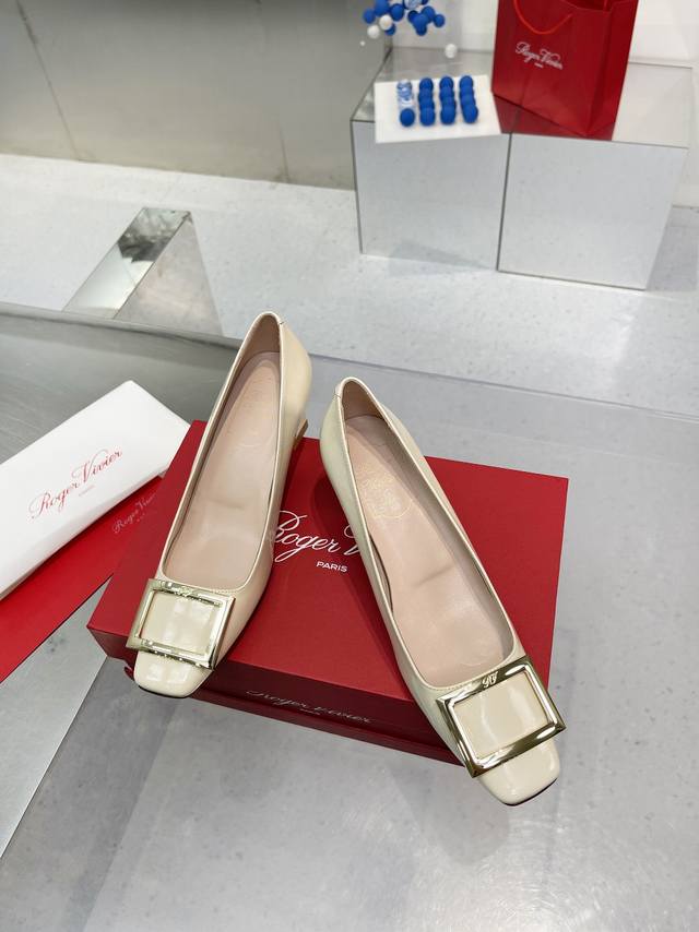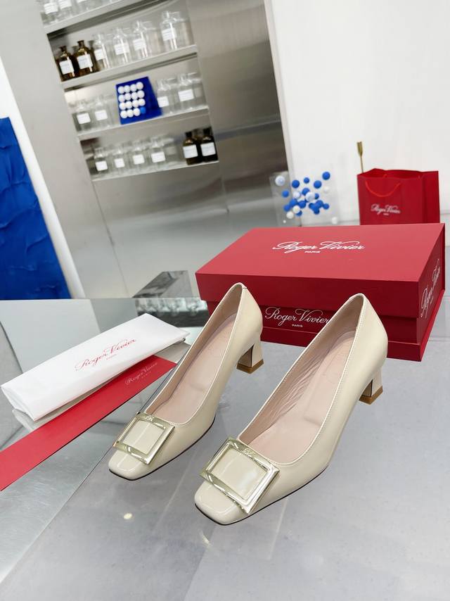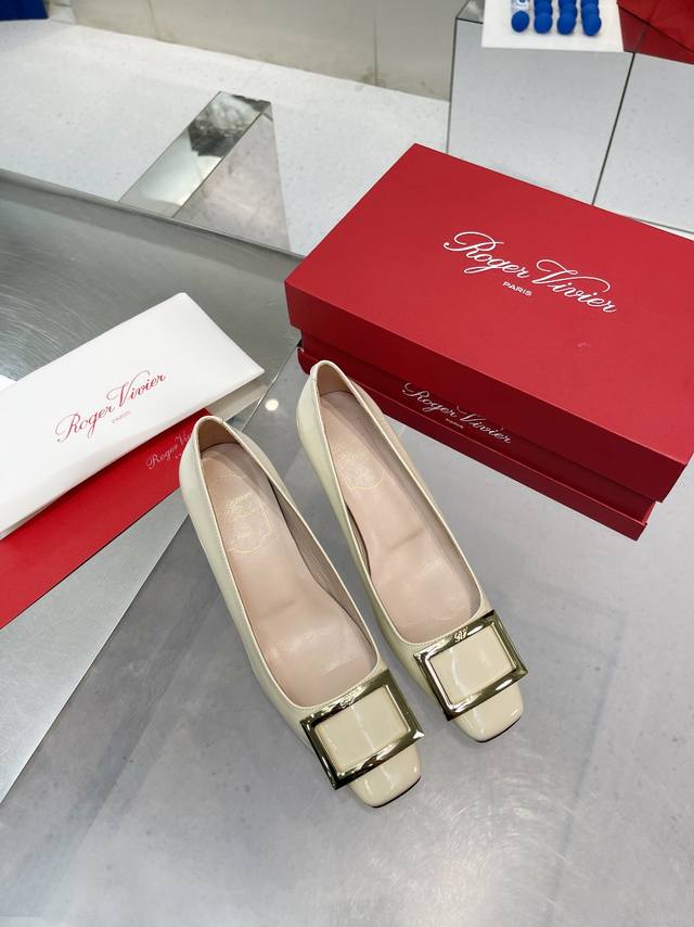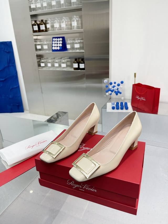 / 工厂p价 女装女鞋 运动原单 Rogervivie R V女鞋鞋Trompett粗跟方扣女鞋. 本款单鞋百搭舒适.搭配金属方扣. 经典而不失创新. 倾斜的鞋跟为