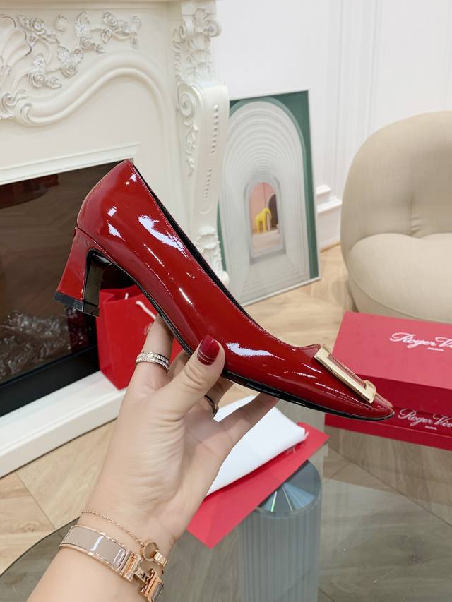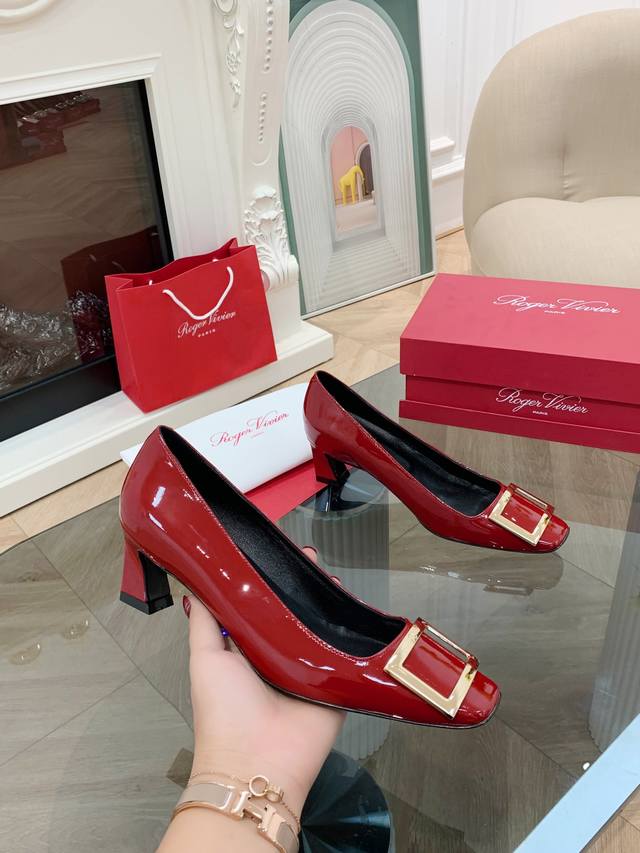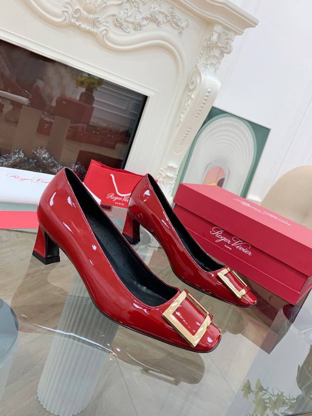 / 工厂p价 女装女鞋 运动原单 Rogervivie R V女鞋鞋Trompett粗跟方扣女鞋. 本款单鞋百搭舒适.搭配金属方扣. 经典而不失创新. 倾斜的鞋跟为