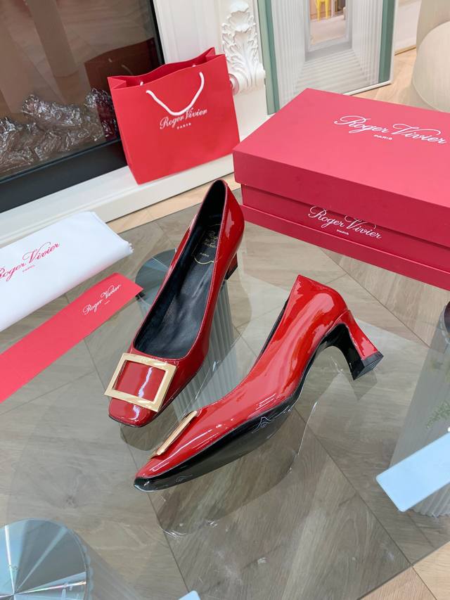 工厂p价 女装女鞋 运动原单 Rogervivie R V女鞋鞋Trompett粗跟方扣女鞋. 本款单鞋百搭舒适.搭配金属方扣. 经典而不失创新. 倾斜的鞋跟为Trmpette增添无穷魅力. 面料进口软牛柒皮. 内垫脚一致羊皮内. 跟高5Cm. 码数35-40 34.40 订做. DDD