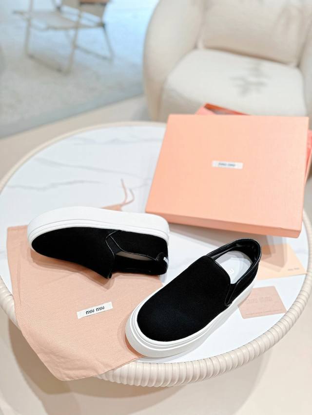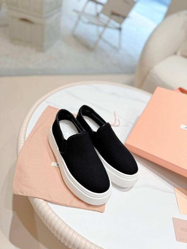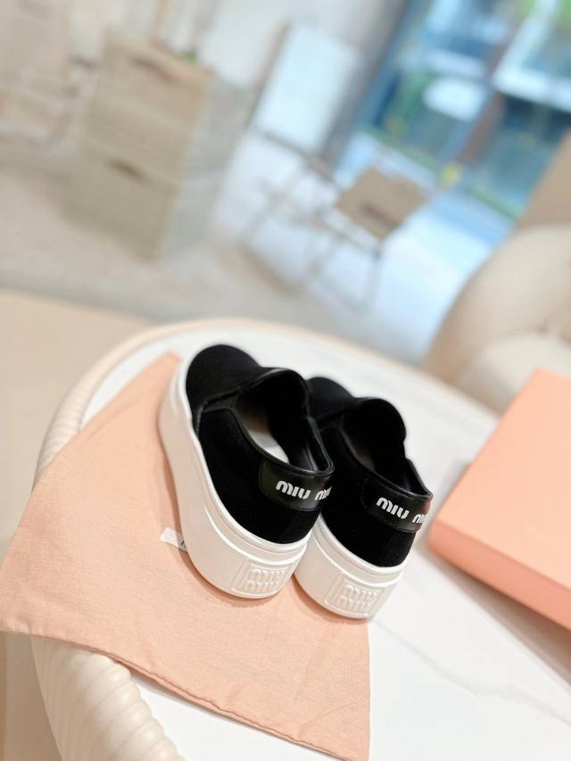 工厂p价 ! 缪缪Miumiu24Ss专柜主打最新款厚底休闲小白鞋硬货上新 顶级版本.代购级别!奢华大气,高级感十足,上脚更是高人一等! 材质:面料私家定制原版帆布 .与专柜同步无色差. 秒杀市面所有普通水洗布面!内里原版定制帆布,垫脚原版定制注塑成型Logo牛皮面垫脚,私家原版开模Tpu防滑成型大底 非市面的笨重橡胶大底 配置专柜原版包装!三色入:黑色 米白 杏色 Size:35一40 41可订做 DDD