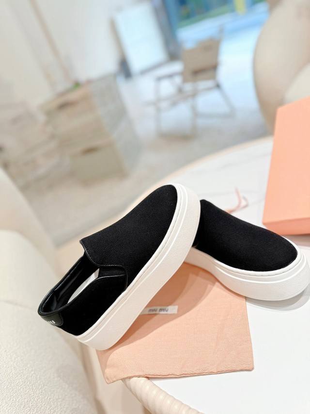 出厂 缪缪2025阿甘休闲鞋运动鞋 春夏新款 最近爆款前卫大胆的设计 .Miu风格融于此款厚底帆布运动鞋的简约线条...