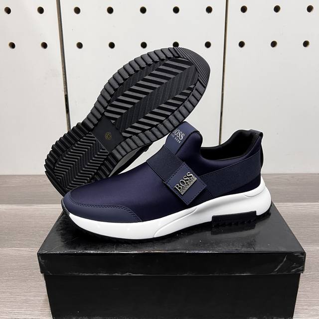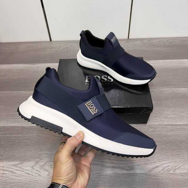 / 工厂p价 Boss新款休闲运动男鞋 时尚百搭, 版型简洁大气, 面料采用进口牛皮配原版布料,内里羊皮垫脚,原版耐磨橡胶大底,独家新款,实物拍摄,三色可选,码数: