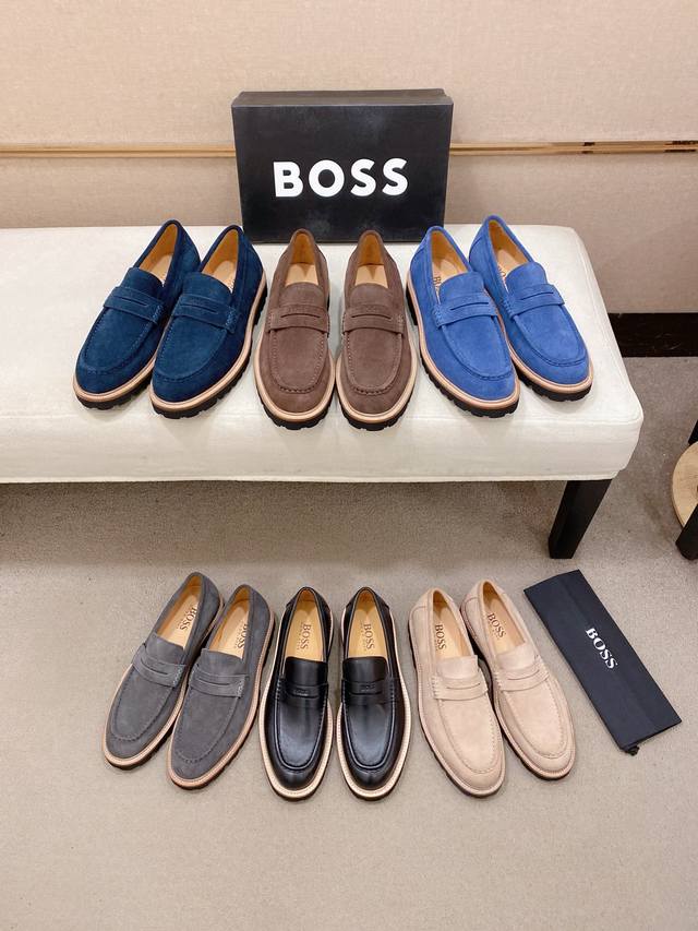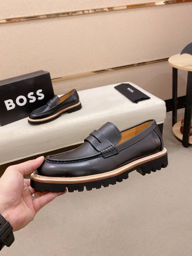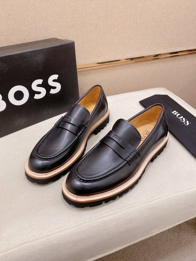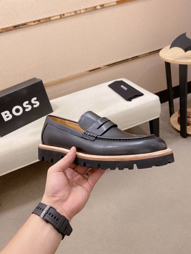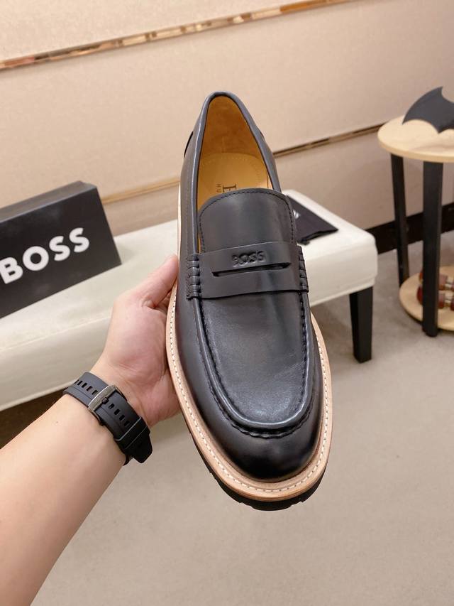 工厂p价 Boss 男士精品休闲皮鞋,顶级品质,鞋面进口牛皮,水染牛皮内里,真皮沿条舒适发泡大底,标准码数39-44 38.45.46定制 DDD