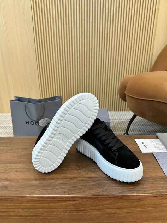 工厂p价 DDD Hogan 霍根 新款转图必爆 H-Stripes系列情侣款厚底饼干鞋飞艇鞋休闲运动鞋。 DDD 顶级版本原版购入开发做货 DDD 此款H-Stripes系列运动鞋采用竖条和波纹的厚底设计,令整鞋焕发新意活力,穿梭型格畅想,抢占视线焦点,再掀现代感都市风潮。 DDD 面料:原版定制进口牛皮材质 DDD 内里:原版定制透气网里 DDD 鞋底:独家开模超轻发泡材质 DDD 底厚:约5.5Cm DDD 码数:女35-40 DDD
