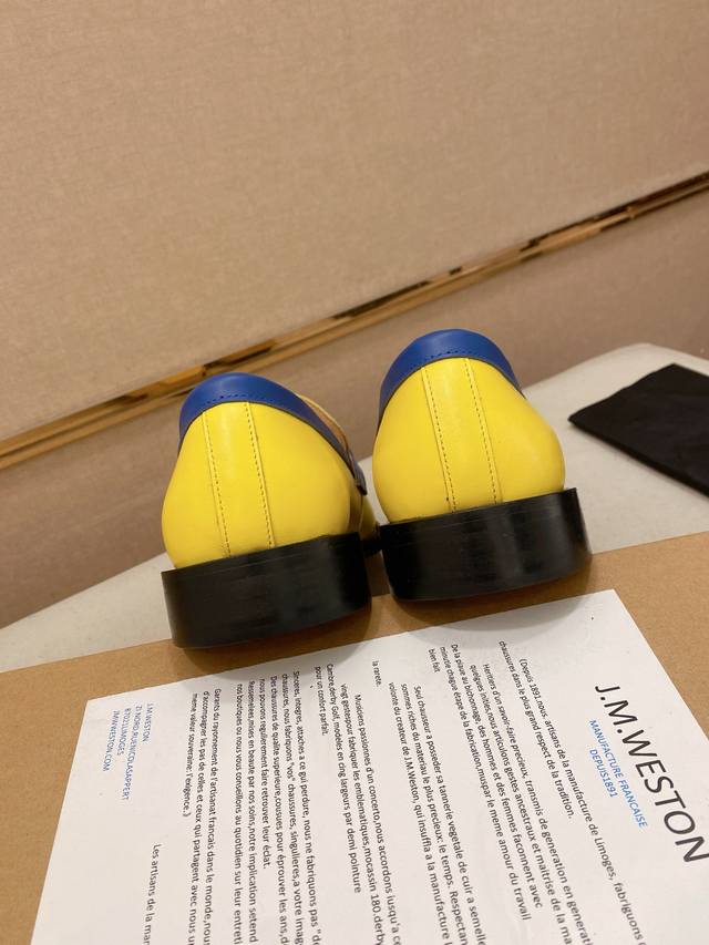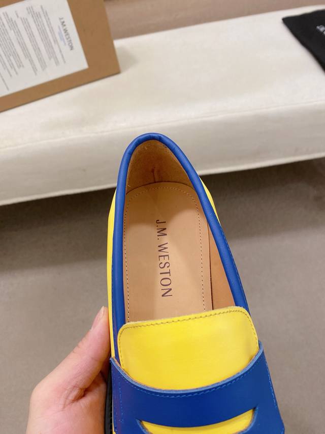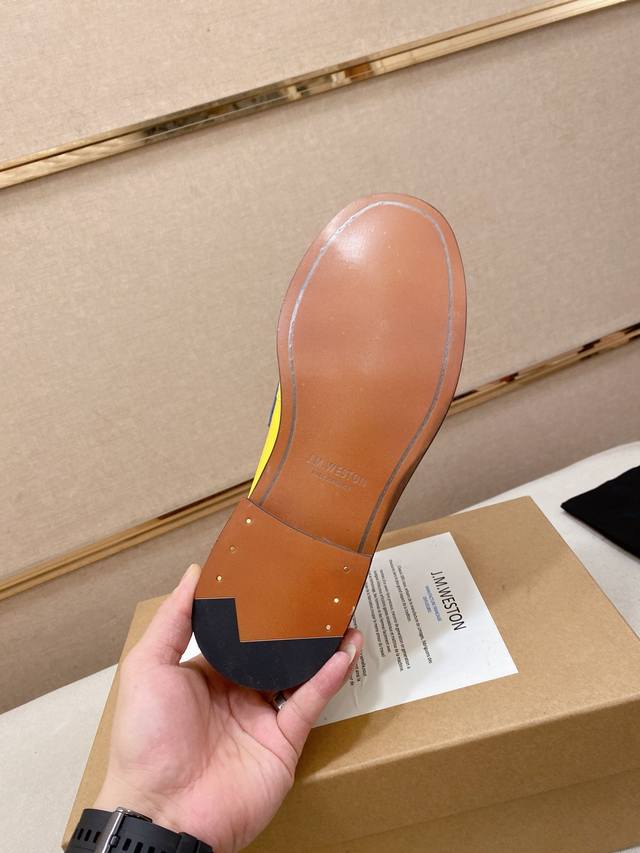 工厂p价 J.M.Westo*N 威士-顿 法国顶级皮鞋品牌 威士-顿皮鞋品牌起源于1891年在法国成立以来已有100多年的历史,其超过百年的纯手工制造男鞋 J.M.Westo*N 以传统精湛的手工技术、高雅而内敛的设计风格而享誉国际 堪称是奢华绅士皮鞋的制作典范 经典的男士乐福鞋皮鞋 采用进口牛皮 反牛皮制成 手工缝制鞋面 鞋面饰以同材质横带加持 内里及垫脚选用优质苯染进口牛皮打造 垫脚上压印品牌 Logo标识 原版意大利真皮大底 后跟加入橡胶底片增强抓地性能 防滑且舒适! DDD 标准专柜码数:39~