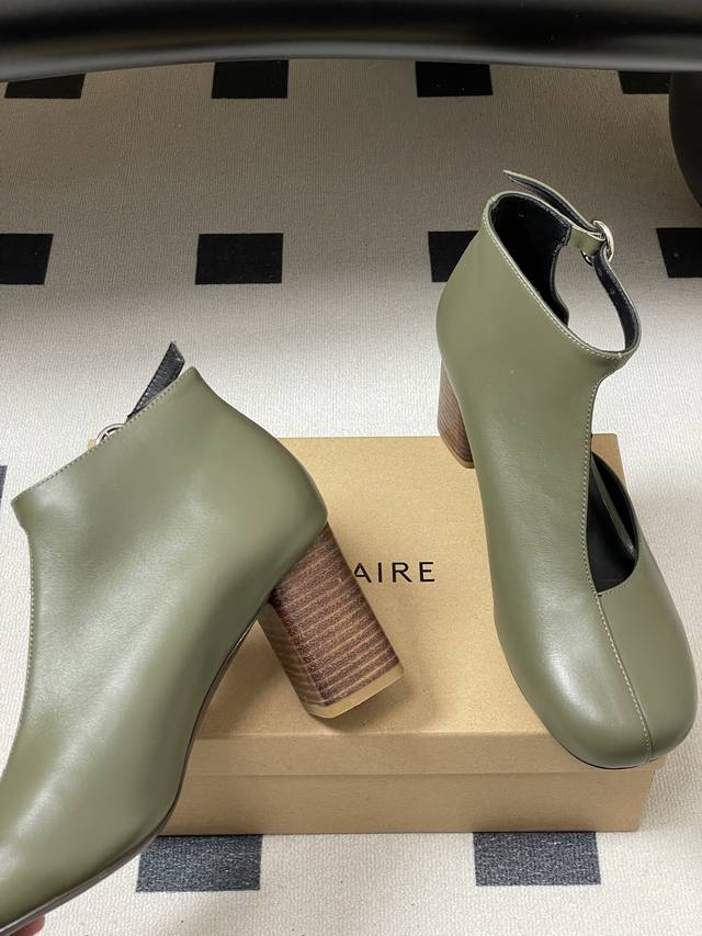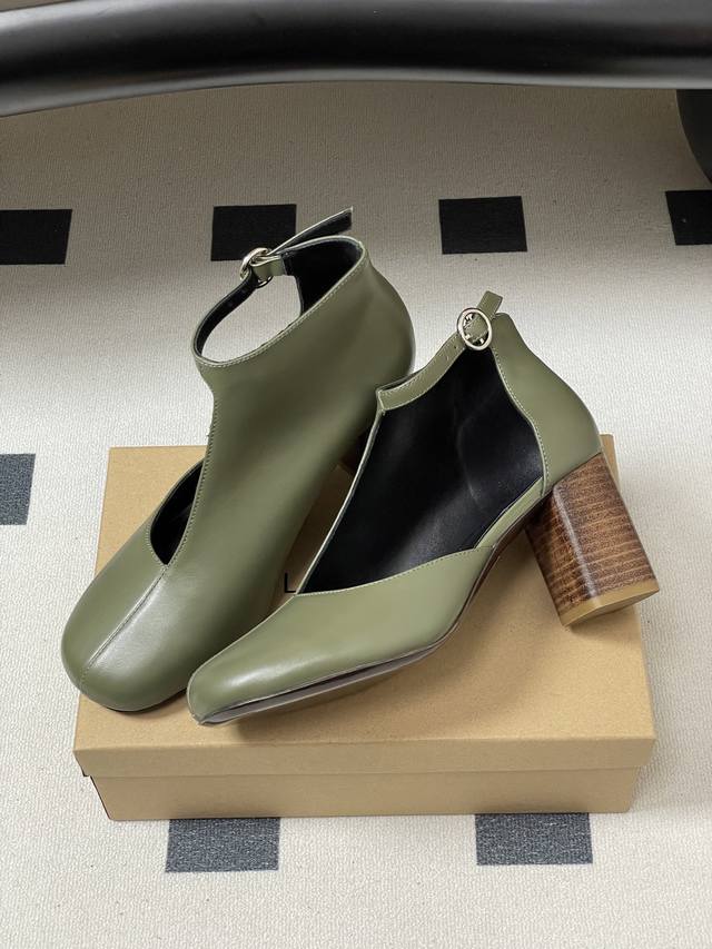 工厂p价 - Ddd Lemaire2026S 春夏新款 方圆头粗跟镂空短靴个性高跟侧空凉靴 Ddd 采用方圆头+粗跟的组合,鞋型是短靴与浅口单鞋的融合款,鞋帮处做了镂空V型剪裁,搭配后踝的金属环扣装饰,线条简约又带有机能感,粗跟设计兼顾了稳定性与气场。 Ddd 主打低饱和的奶茶棕与深灰色,是极简风的经典配色;延续了Lemaire一贯的极简主义与法式慵懒风格,设计强调实穿性与造型感的平衡,细节处尽显小众轻奢的调性。 Ddd 鞋面:小牛皮 Ddd 内里垫脚:羊皮 Ddd 鞋底:意大利真皮大底 Ddd 跟高: