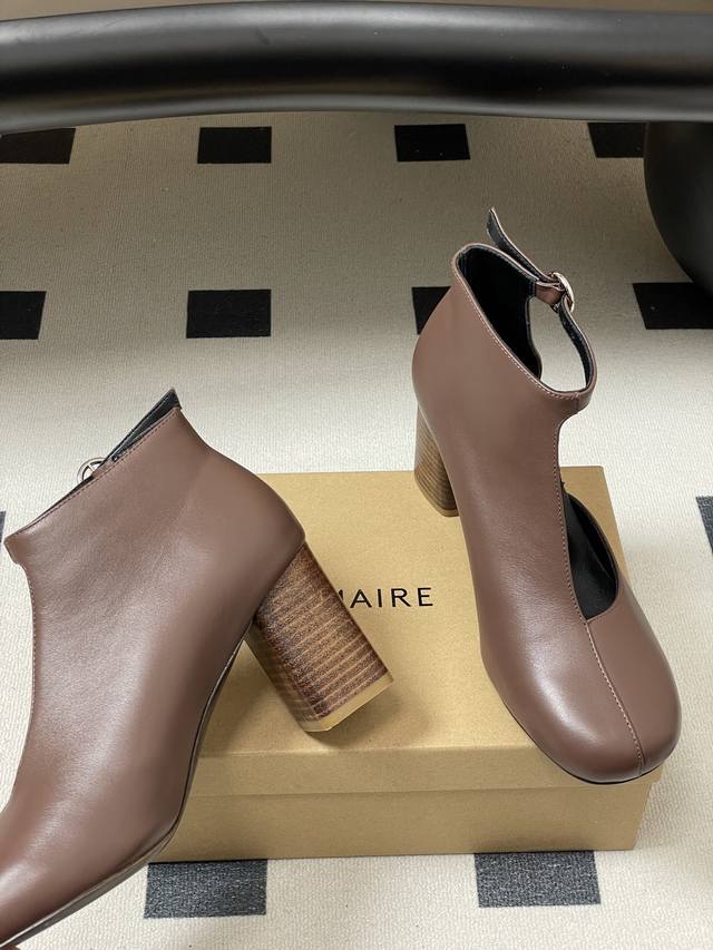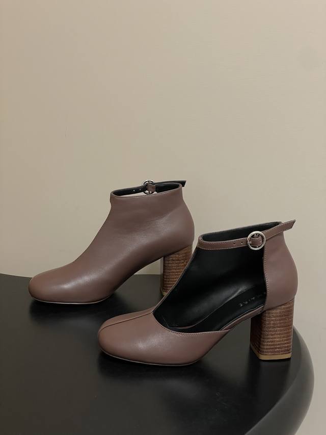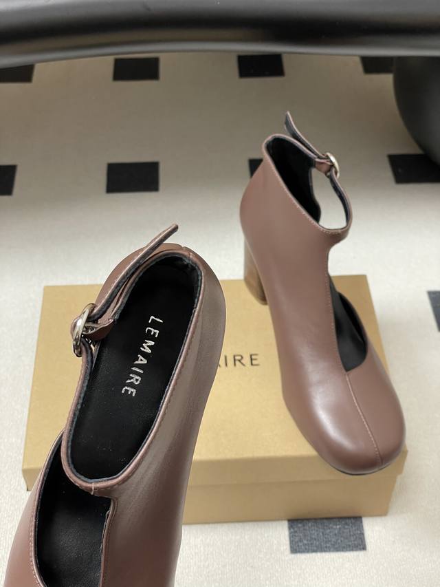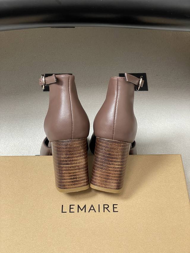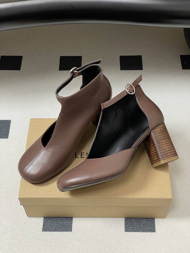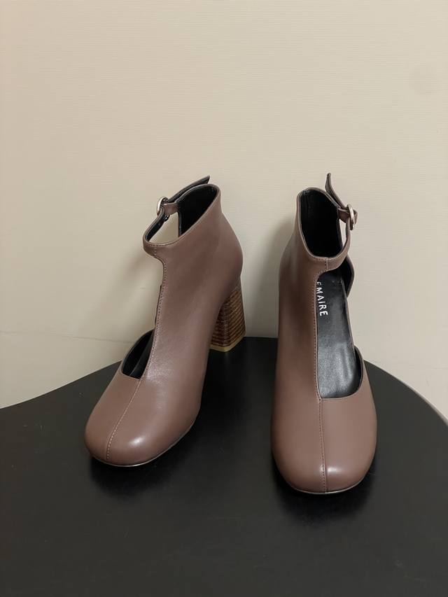 工厂p价 - Ddd Lemaire2026S 春夏新款 方圆头粗跟镂空短靴个性高跟侧空凉靴 Ddd 采用方圆头+粗跟的组合,鞋型是短靴与浅口单鞋的融合款,鞋帮处做了镂空V型剪裁,搭配后踝的金属环扣装饰,线条简约又带有机能感,粗跟设计兼顾了稳定性与气场。 Ddd 主打低饱和的奶茶棕与深灰色,是极简风的经典配色;延续了Lemaire一贯的极简主义与法式慵懒风格,设计强调实穿性与造型感的平衡,细节处尽显小众轻奢的调性。 Ddd 鞋面:小牛皮 Ddd 内里垫脚:羊皮 Ddd 鞋底:意大利真皮大底 Ddd 跟高: