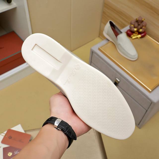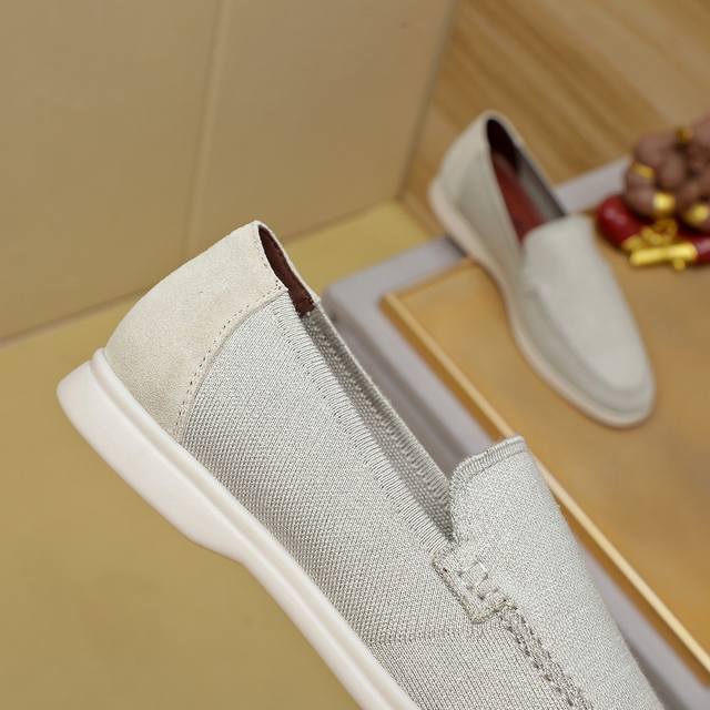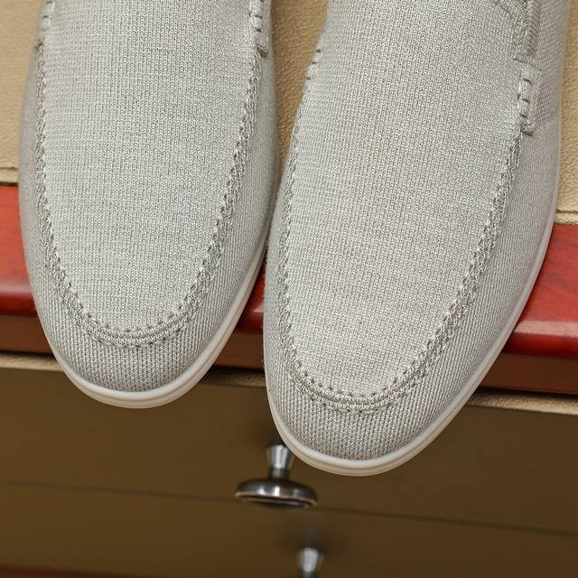 / 工厂P价 Loro Piana莫卡辛鞋采用Wish羊毛面料制成。鞋面如针织品一般,采用织机制作,再与橡胶鞋底加装在一起。Rain System的防泼水处理提升了