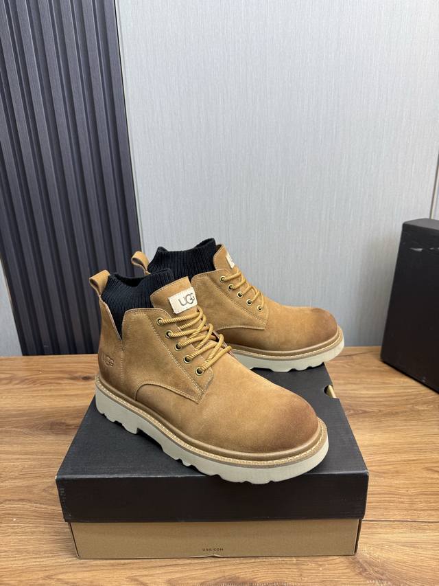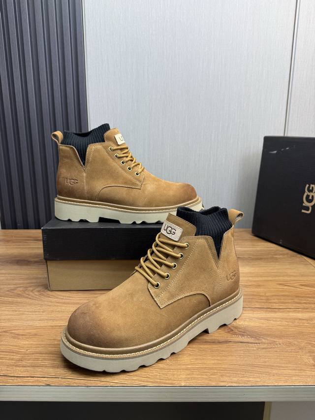 工厂p价 Ugg 男士冬季爆款保暖靴简单时尚的设计,牛皮舒适保暖羊毛里 穿着柔软舒适,保暖性好,脚感极佳 38-45正码