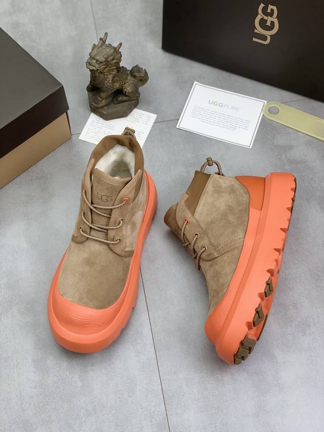 工厂P价P 实价 情侣款 Ugg Tasman Weather Hybrid一秒蹬雪地靴 王一博同款经典Tasman鞋型之上加入大橘底机能撞色设计环保防水防雪材质兼具时髦与功能属性,同时搭配全新Ugg基恩毛茸拼色夹克亮橘与栗色碰撞出轻户外新风格打开早秋出行新体验使用优选材质,17毫米皮毛一体表面更温暖透气,外底升级成为轻盈耐磨的轻翼科技大底! Size:女码35-40 男码40-44 官网颜色:3色可选