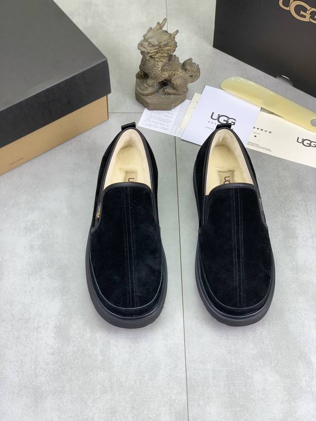 工厂p价p 实价 爆款 百搭休闲套脚毛鞋 真羊毛 Ugg 爆款男鞋官方网同步品质 不是一般市场仿货可比拟的鞋面为进口意大利磨砂小牛皮,内里:垫脚级真羊毛只有A级才能显效果 手感柔滑细腻鞋型大气,只有厂才能做到原厂大底完美的韧性 才能让客户告别一次性消费 真羊毛里 超级保暖.黑色 棕色可选 码数:39-44 DDD