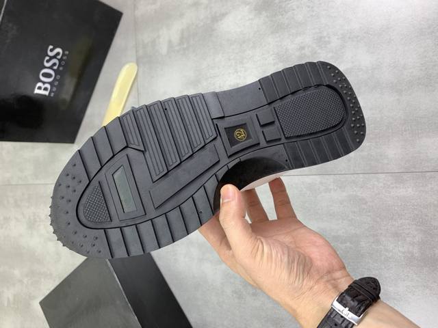 工厂P价P 实价 Boss 2025原版系带男鞋 经典高帮款休闲鞋本款是官方主打经典款,质量,原厂名师制作,采用进口飞织透气面料舒适透气网布內里羊皮鞋垫,完美楦