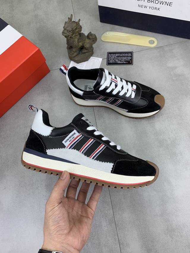 / 工厂p价p 实价 Thom Browne 汤姆.布朗 Tb官网同款 原单爆款运动鞋 头层牛皮加透气布料1:1原板 羊皮内里鞋身配件开模 品质 亲们你还为穿着搭配