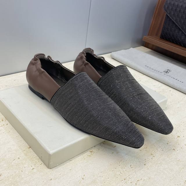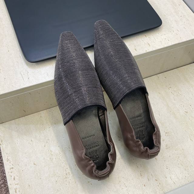 / 工厂P价P DDD Brunello Cucineli 布鲁内诺库奇内利2026早春新款串珠女鞋 Bc平底方头拼色懒人休闲单鞋 DDD 材质:鞋面进口小牛皮 进