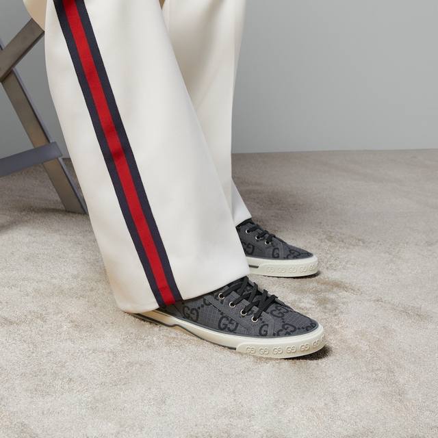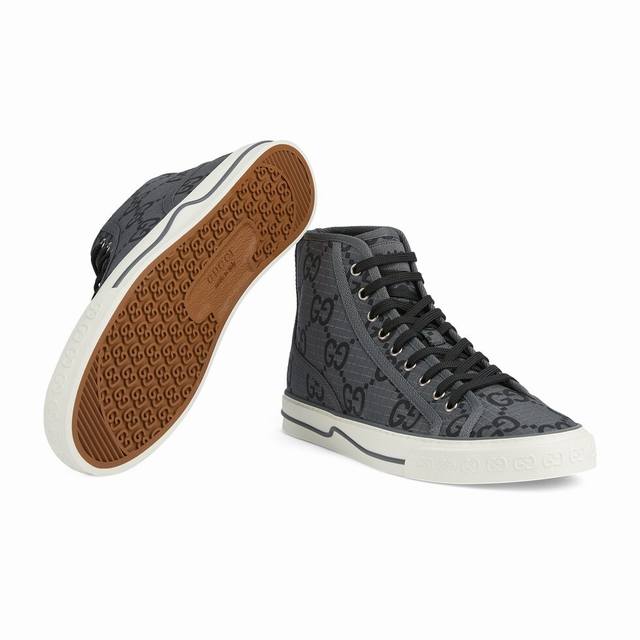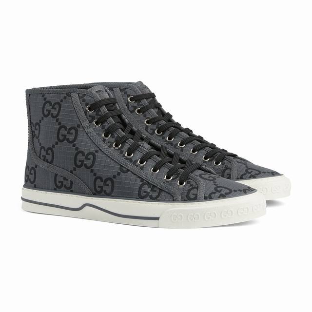 / 工厂p价p p 男+10 G~Tennis 1977系列高帮情侣款运动鞋是早秋全新推出的配饰和成衣系列单品之一,鞋面黑色Gg尼龙,采用Econyl制成,这是一种