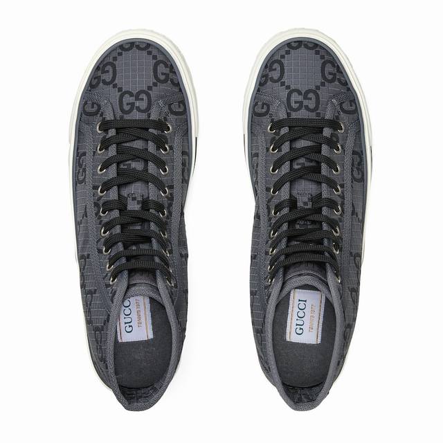 工厂p价p p 男+10 G~Tennis 1977系列高帮情侣款运动鞋是早秋全新推出的配饰和成衣系列单品之一,鞋面黑色Gg尼龙,采用Econyl制成,这是一种