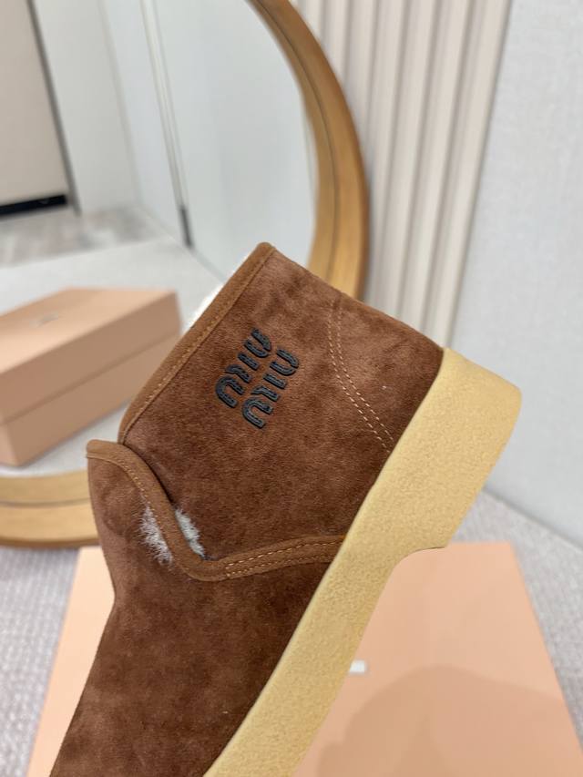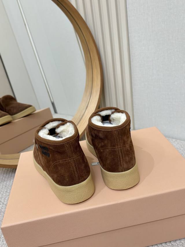 / 工厂p批 女装女鞋 运动原单 Miumiu.秋冬走秀新款纯羊毛雪地靴 冬日甜酷少女的温暖选择雪地靴甜酷新高度,从造型到细节,把少女感与保暖性拿捏刚好,丝光牛反绒