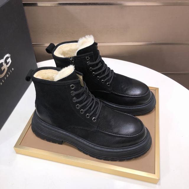 工厂p批 Ugg 全真羊毛内里 请注意 原单品质 比较毛料的厚度爆款马丁靴 来自澳洲温暖奢侈品牌男鞋,官网同步、贝克汉姆男款..,采用进口头层打蜡牛皮制作,鞋头打蜡 澳洲真羊毛绒里 精心缝制而成..进口橡胶马丁靴大底 舒适、柔软、耐磨 质量真心赞..做工精湛,一看就爱不释手。码数39-44 DDD
