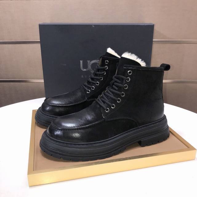 工厂p批 Ugg 全真羊毛内里 请注意 原单品质 比较毛料的厚度爆款马丁靴 来自澳洲温暖奢侈品牌男鞋,官网同步、贝克汉姆男款..,采用进口头层打蜡牛皮制作,鞋头