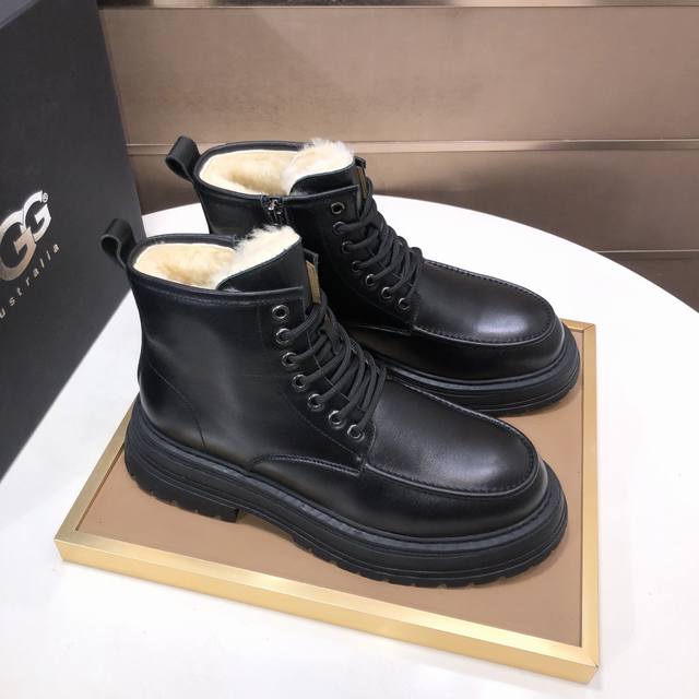 工厂p批 Ugg 全真羊毛内里 请注意 原单品质 比较毛料的厚度爆款马丁靴 来自澳洲温暖奢侈品牌男鞋,官网同步、贝克汉姆男款..,采用进口头层打蜡牛皮制作,鞋头