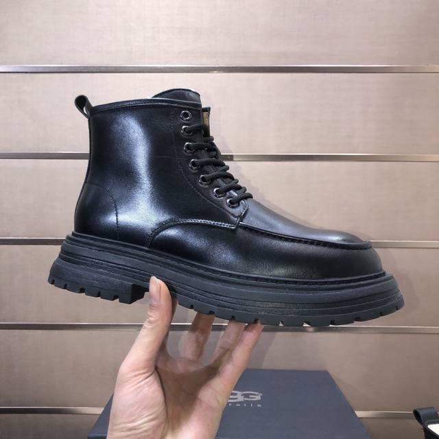 工厂p批 Ugg 全真羊毛内里 请注意 原单品质 比较毛料的厚度爆款马丁靴 来自澳洲温暖奢侈品牌男鞋,官网同步、贝克汉姆男款..,采用进口头层打蜡牛皮制作,鞋头打蜡 澳洲真羊毛绒里 精心缝制而成..进口橡胶马丁靴大底 舒适、柔软、耐磨 质量真心赞..做工精湛,一看就爱不释手。码数39-44 DDD