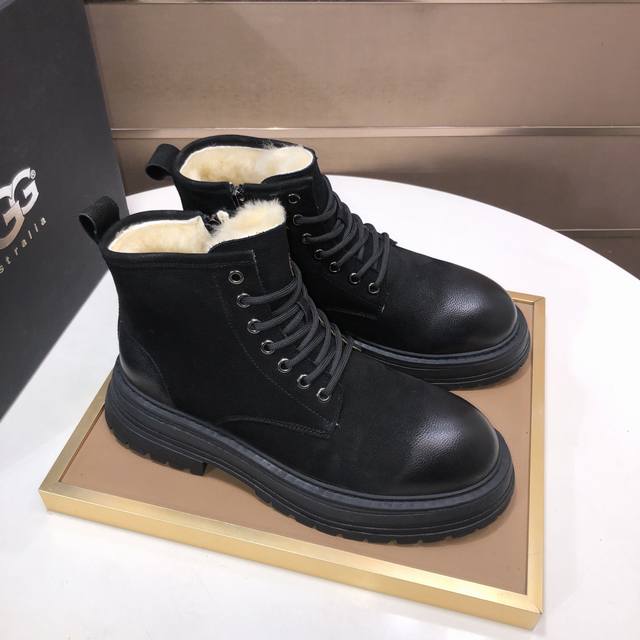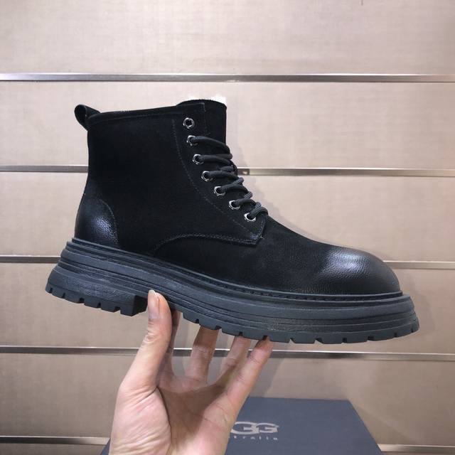 工厂p批 Ugg 全真羊毛内里 请注意 原单品质 比较毛料的厚度爆款马丁靴 来自澳洲温暖奢侈品牌男鞋,官网同步、贝克汉姆男款..,采用进口头层打蜡牛皮制作,鞋头打蜡 澳洲真羊毛绒里 精心缝制而成..进口橡胶马丁靴大底 舒适、柔软、耐磨 质量真心赞..做工精湛,一看就爱不释手。码数39-44 DDD
