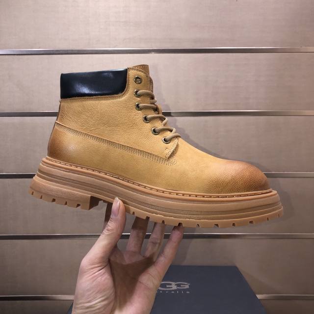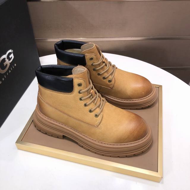 工厂p批 Ugg 全真羊毛内里 请注意 原单品质 比较毛料的厚度爆款马丁靴 来自澳洲温暖奢侈品牌男鞋,官网同步、贝克汉姆男款..,采用进口头层打蜡牛皮制作,鞋头打蜡 澳洲真羊毛绒里 精心缝制而成..进口橡胶马丁靴大底 舒适、柔软、耐磨 质量真心赞..做工精湛,一看就爱不释手。码数39-44 DDD