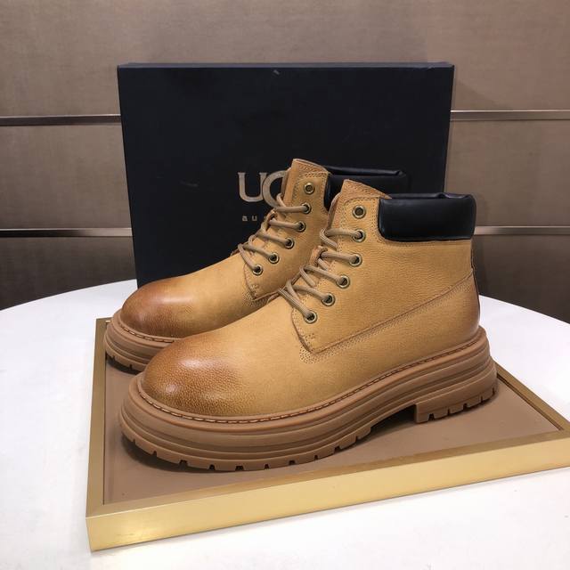 工厂p批 Ugg 全真羊毛内里 请注意 原单品质 比较毛料的厚度爆款马丁靴 来自澳洲温暖奢侈品牌男鞋,官网同步、贝克汉姆男款..,采用进口头层打蜡牛皮制作,鞋头