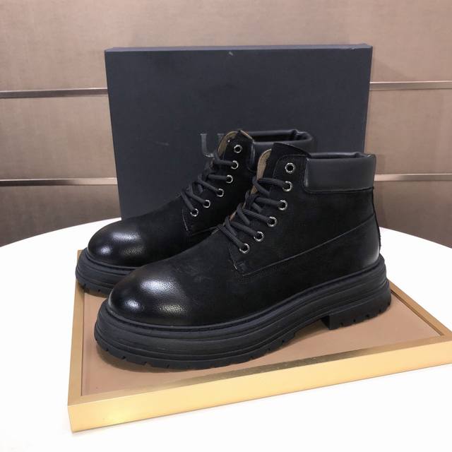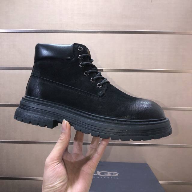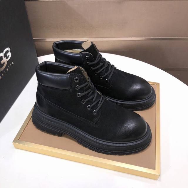 工厂p批 Ugg 全真羊毛内里 请注意 原单品质 比较毛料的厚度爆款马丁靴 来自澳洲温暖奢侈品牌男鞋,官网同步、贝克汉姆男款..,采用进口头层打蜡牛皮制作,鞋头打蜡 澳洲真羊毛绒里 精心缝制而成..进口橡胶马丁靴大底 舒适、柔软、耐磨 质量真心赞..做工精湛,一看就爱不释手。码数39-44 DDD