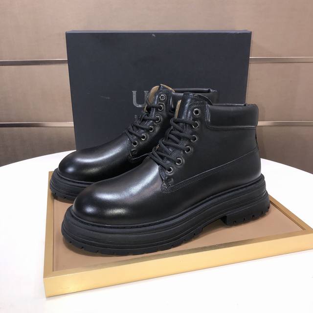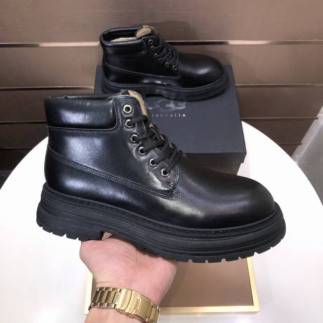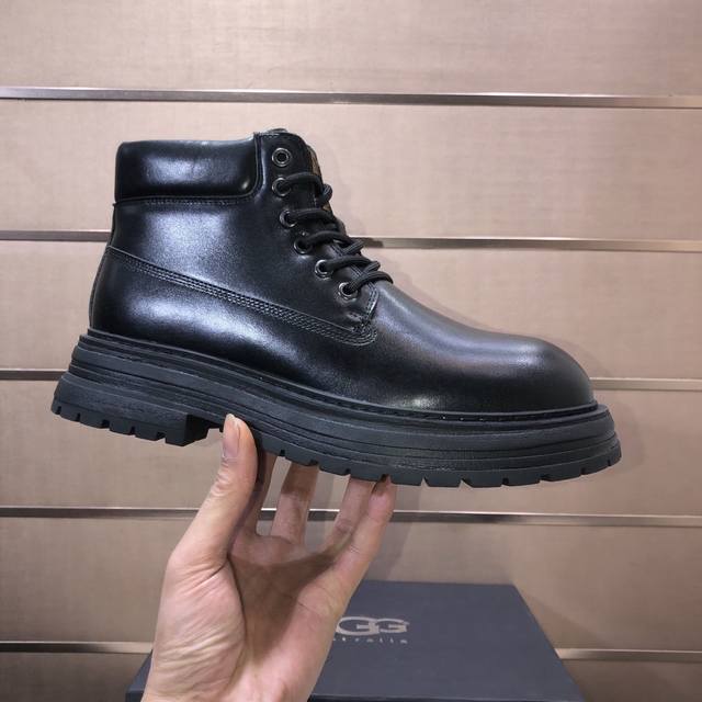 工厂p批 Ugg 全真羊毛内里 请注意 原单品质 比较毛料的厚度爆款马丁靴 来自澳洲温暖奢侈品牌男鞋,官网同步、贝克汉姆男款..,采用进口头层打蜡牛皮制作,鞋头打蜡 澳洲真羊毛绒里 精心缝制而成..进口橡胶马丁靴大底 舒适、柔软、耐磨 质量真心赞..做工精湛,一看就爱不释手。码数39-44 DDD