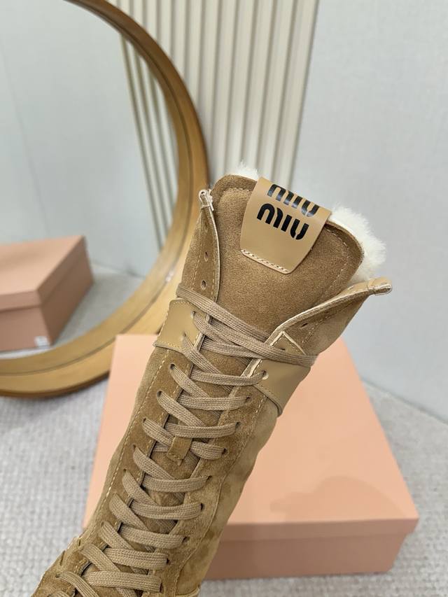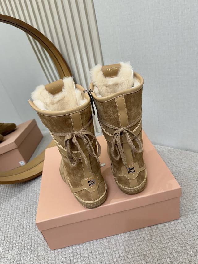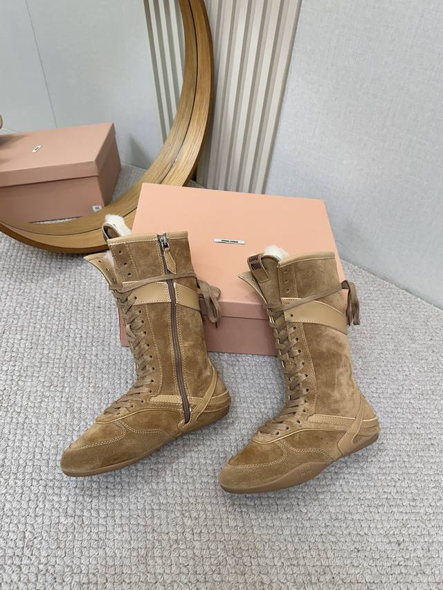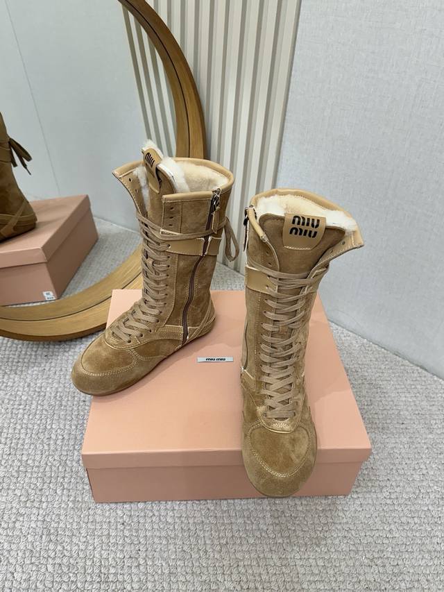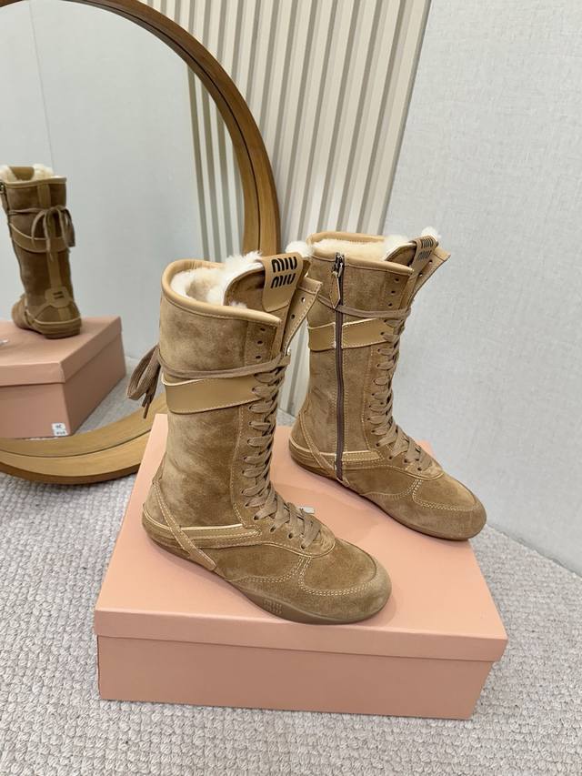 / 工厂p批p¥ Miumiu 2025冬靴新款战靴羊毛靴马丁靴中筒靴 复古经典简约帅气百搭~鞋形超好,好穿到飞起!轻盈不笨重!~全羊毛内里,超级好看又保暖 冬季必