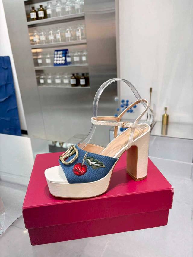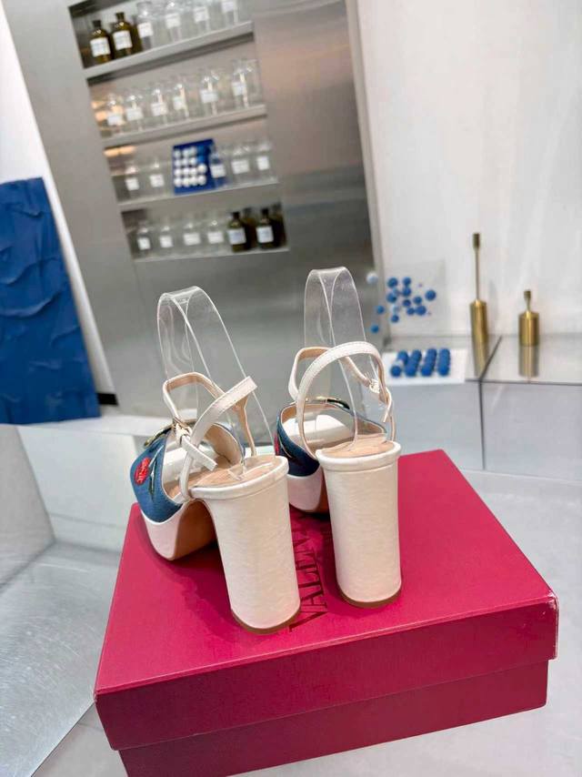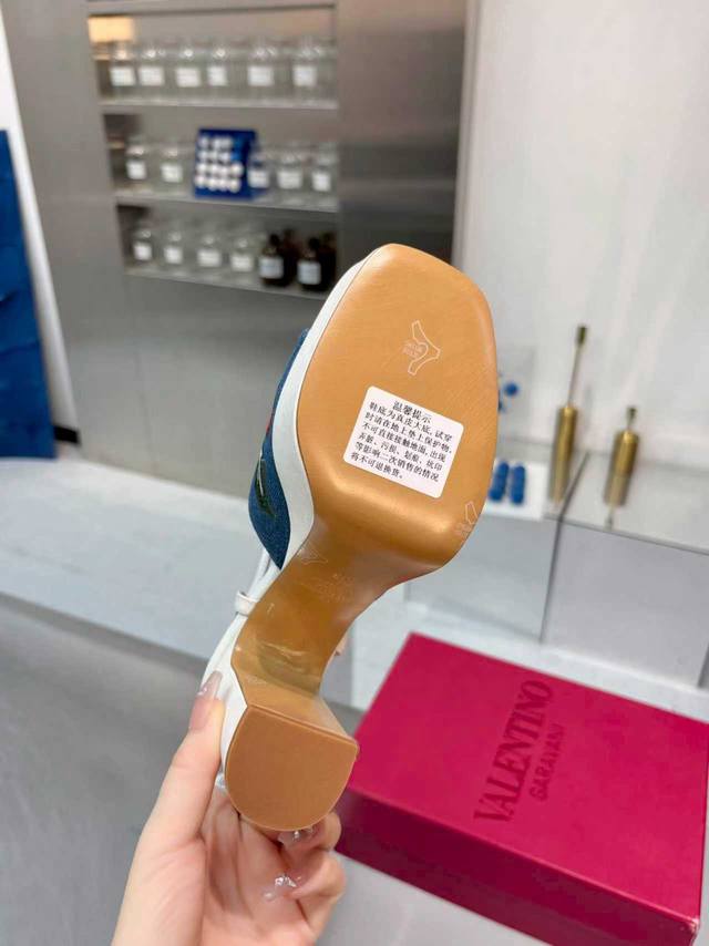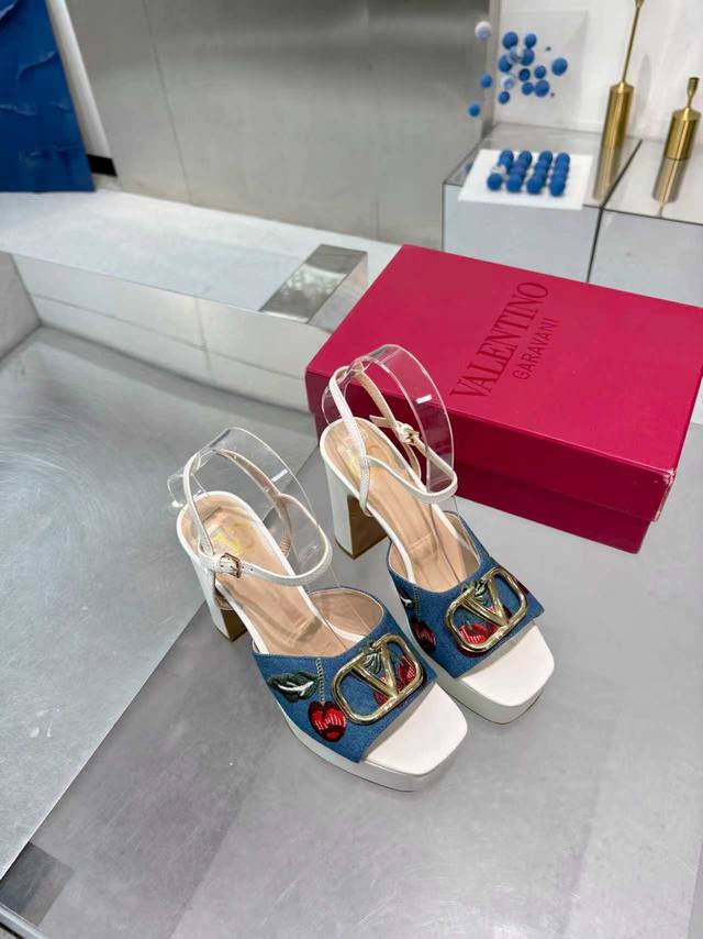 工厂P 顶级代购版本 Valentno 华伦新秀款! 2025Ss最新金属Logo 坡跟高水台凉鞋!原版购入1:1顶级复刻!精致的楦型设计,侧身弧线完美!完美电绣工艺 精选意大利进口A级真皮大底,带给您正品级的脚感!供高端客户代购首选 材质 鞋面:原版进口牛皮+牛仔布 内里:原版进口羊皮 大底:原版开模进口真皮大底 水台高 前 3Cm 后 11Cm 码数 35-41码 41-42定做 包装 配置原版包装