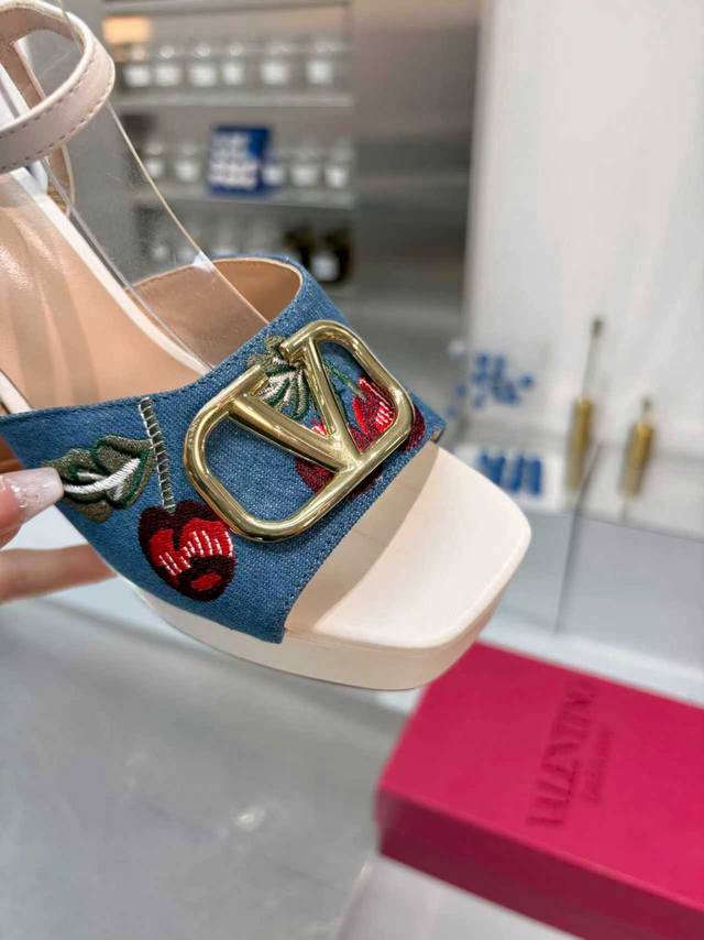 / 工厂P 顶级代购版本 Valentno 华伦新秀款! 2025Ss最新金属Logo 坡跟高水台凉鞋!原版购入1:1顶级复刻!精致的楦型设计,侧身弧线完美!完美电
