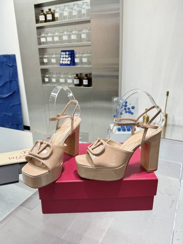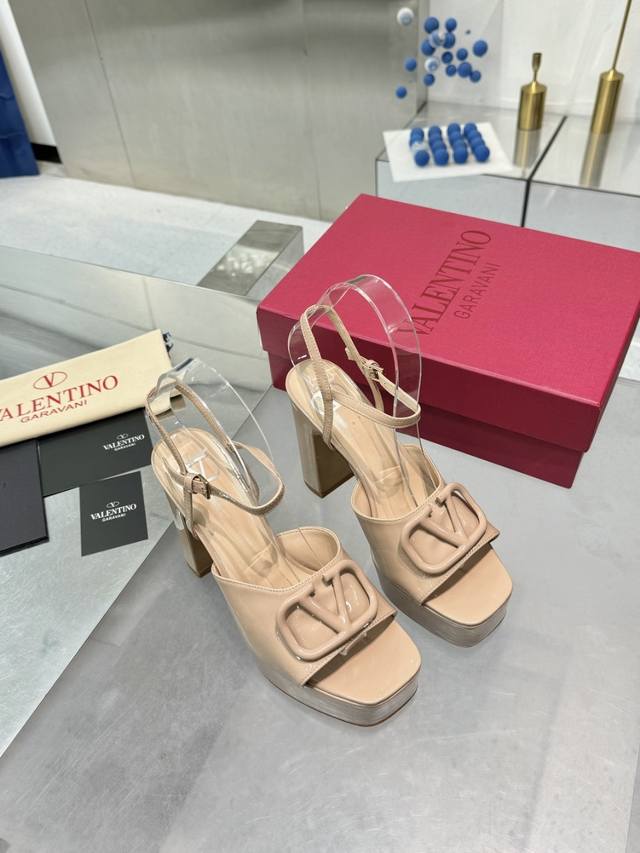 工厂P 顶级代购版本 Valentno 华伦新秀款! 2025Ss最新金属Logo 坡跟高水台凉鞋!原版购入1:1顶级复刻!精致的楦型设计,侧身弧线完美! 精选