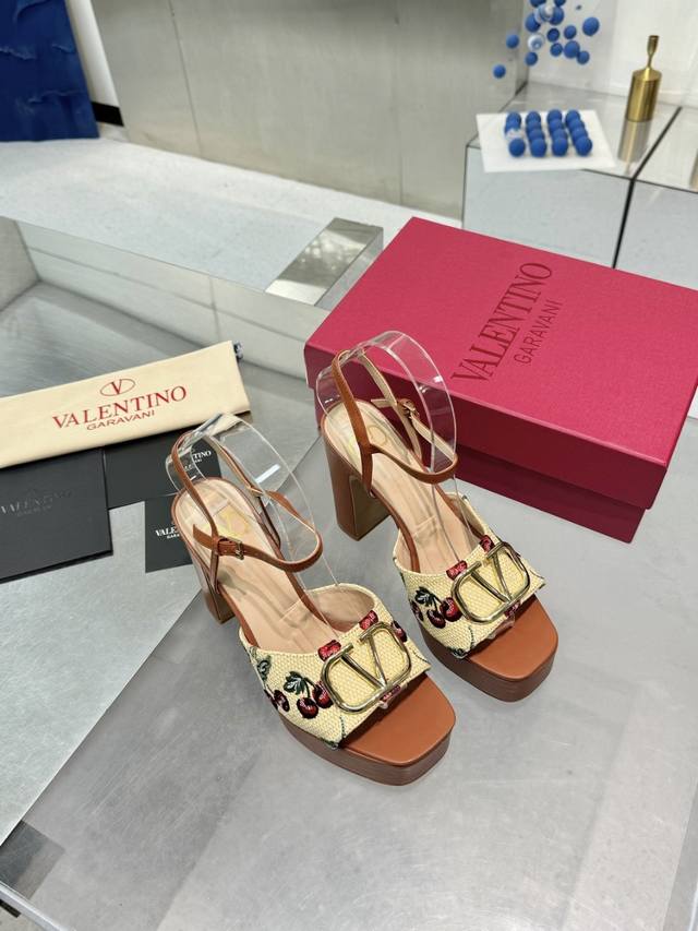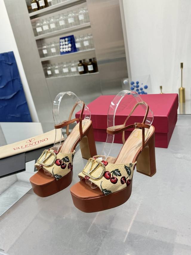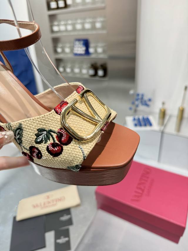 / 工厂P 顶级代购版本 Valentno 华伦新秀款! 2025Ss最新金属Logo 坡跟高水台凉鞋!原版购入1:1顶级复刻!精致的楦型设计,侧身弧线完美! 精选