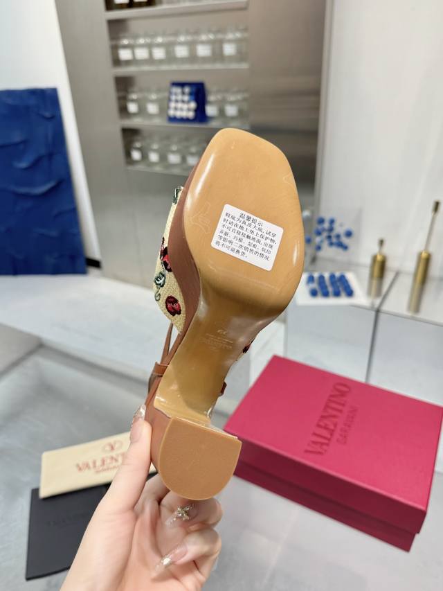 工厂P 顶级代购版本 Valentno 华伦新秀款! 2025Ss最新金属Logo 坡跟高水台凉鞋!原版购入1:1顶级复刻!精致的楦型设计,侧身弧线完美! 精选意大利进口A级真皮大底,带给您正品级的脚感!供高端客户代购首选 材质 鞋面:原版进口牛皮 内里:原版进口羊皮 大底:原版开模进口真皮大底 水台高 前 3Cm 后 11Cm 码数 35-41码 41-42定做 包装 配置原版包装