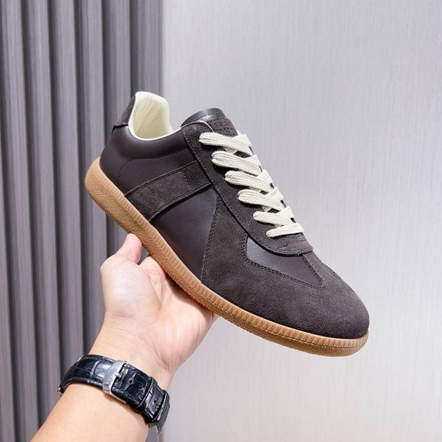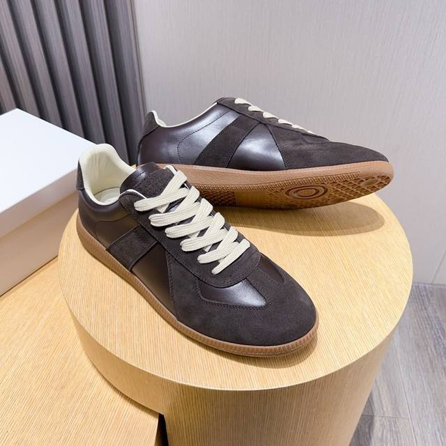 工厂p 马吉拉德训鞋 Maison Margiela Mm6经典德军新款鞋,最早把德训鞋带入时尚鞋履的品牌,经典的版面造型,历久弥新,高格调时尚宝宝一直对它青睐有加,不会断的款式! 翻一番Ins 和小红书,你会发现几乎所有大牌明星博主都示范过这双鞋,永不褪色的经典作品! 鞋面头层牛皮打造,松糕厚底Tpu鞋底,内里垫脚透气羊皮,上脚超柔软舒适!Size:女码35--40 男码38--44 45 46 47定做 DDD